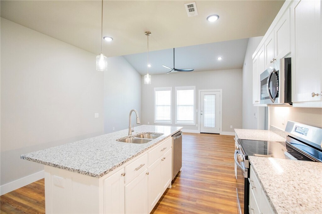 HIGHPOINTE!!! Beautiful New Construction Townhome in Pea Ridge!!! 3 bedrooms 2 1/2 baths,Master on main level. Wood style flooring throughout. Kitchen features custom cabinets,stainless appliances,granite counters,large pantry. Living room has high ceiling and is open to the kitchen and access to the back covered patio. Master bedroom includes walk in shower double sinks and large closet. Upstairs has 2 large bedrooms and 1 full bath,bonus room/office and additional storage room,garage is insulated and included an insulated garage door. Lawncare is included. MLS ID 1318763