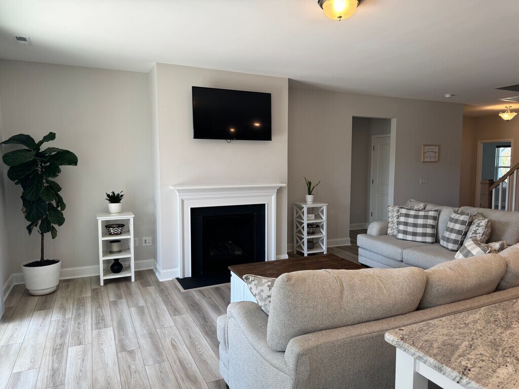 BONUS ROOM AND COMMUNITY POOL! Stunning 3 bedroom, 3 bath home located in The Terraces within in about 5 miles to the beach, and a 30 minute drive to Wilmington and Jacksonville! Open concept floor plan featuring a spacious kitchen island that overlooks the great room with a built in fireplace. The main bedroom is located downstairs and features a double vanity, a walk-in shower, and a spacious walk-in closet. Enjoy the convenience of a gas range, water heater, and fireplace, all powered by natural gas, a great perk of living in The Terraces! The secondary bedroom is also located on the main floor, next to a full bathroom. Upstairs, you’ll find another bedroom, an additional full bathroom, and a spacious bonus room, perfect for a home office, playroom, or guest space! Outside, enjoy both covered front and back porches, along with an enormous patio. Added community perks include a pool, scenic lake, and sidewalks surrounded by beautiful wetlands! Schedule your showing today! **All residents are enrolled in the Resident Benefits Package (RBP) for $55.95/month which includes liability insurance, credit building to help boost the resident's credit score with timely rent payments, up to $1M Identity Theft Protection, HVAC air filter delivery (for applicable properties), our best-in-class resident rewards program, on-demand pest control, and much more! More details upon application.**