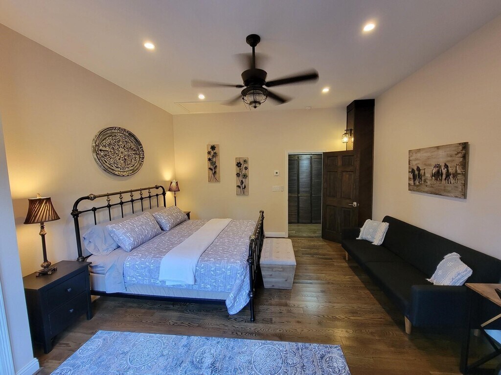 This FULLY FURNISHED apartment is located on the second floor of the back section of a large Spring Branch home in a very quiet,established neighborhood. The entire home was gutted and rebuilt in 2017,and the apartment was added in 2019. Access to the apartment takes you through a small courtyard with fountain to your private entry door,and on to your private stairwell. At the top of the stairwell,to the right of the landing,is the entry to the apartment with its two balconies,an electric fireplace,induction cooking,a large bedroom,and much more. As you enter the apartment,you'll find yourself in a spacious living area with ample natural light. The kitchen is equipped with modern appliances,including a stove,refrigerator,and microwave,making cooking a breeze. The bedroom is comfortable and well-lit,with a large closet providing plenty of storage space. The bathroom is clean and well-maintained,featuring a shower tub combo. MLS# 22078666