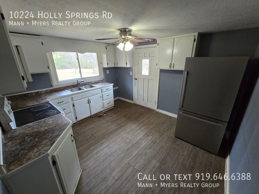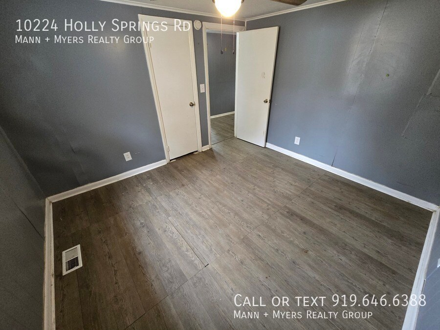Welcome to 10224 Holly Springs Rd, a rare opportunity to enjoy space, comfort, and convenience in one of the Triangle’s most desirable and fast-growing areas. This 5-bedroom, 1-bathroom home offers flexibility, charm, and room to breathe—both inside and out. Inside, vinyl flooring runs throughout the entire home, providing durability, easy maintenance, and a clean modern look. The bathroom features tile flooring for added practicality. The living room is warm and inviting, highlighted by a beautiful fireplace that creates a cozy gathering space for relaxing evenings or entertaining guests. With multiple rooms and versatile living areas, this home easily adapts to your needs—whether you’re looking for extra bedrooms, a home office, creative space, or guest rooms. The open kitchen layout offers plenty of room to move around, cook comfortably, and host family meals or gatherings. Outside, the home sits on an expansive 3-acre lot, offering endless possibilities for outdoor activities, gardening, recreation, or simply enjoying the privacy and open space rarely found this close to town.