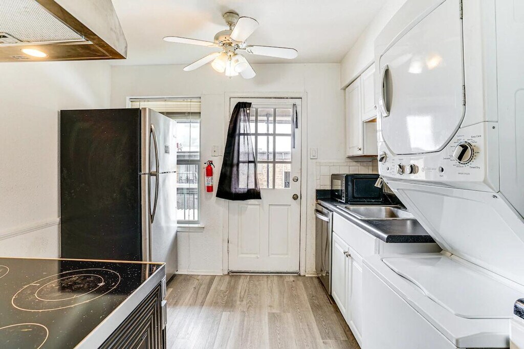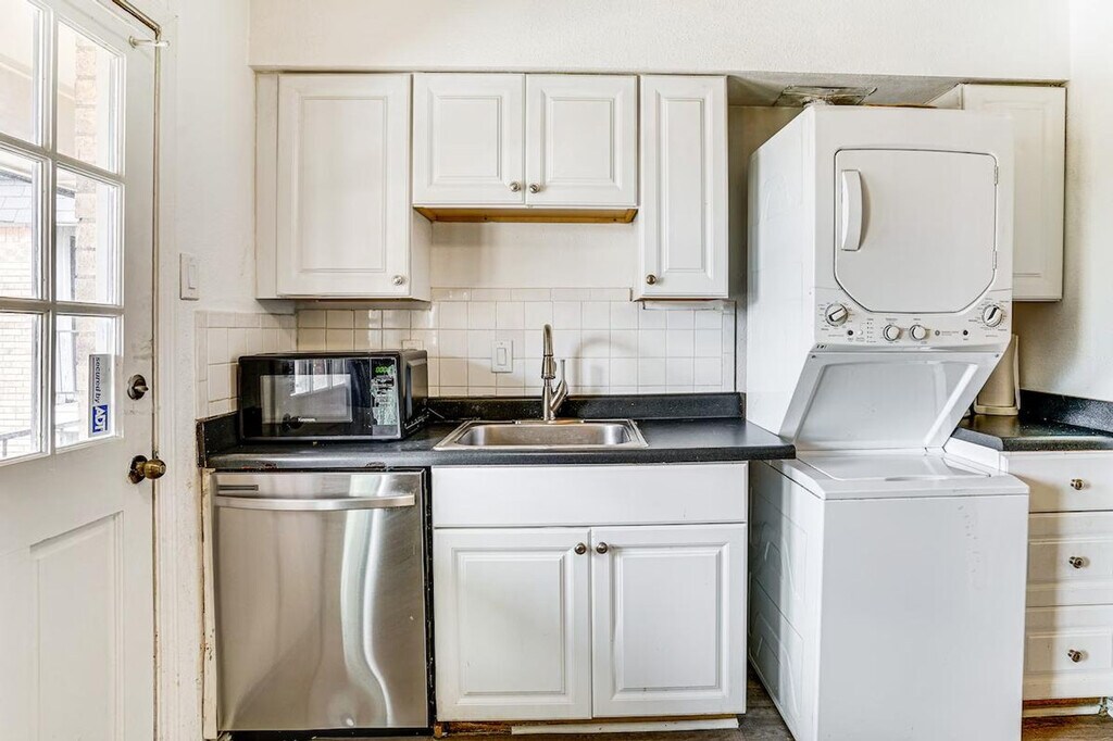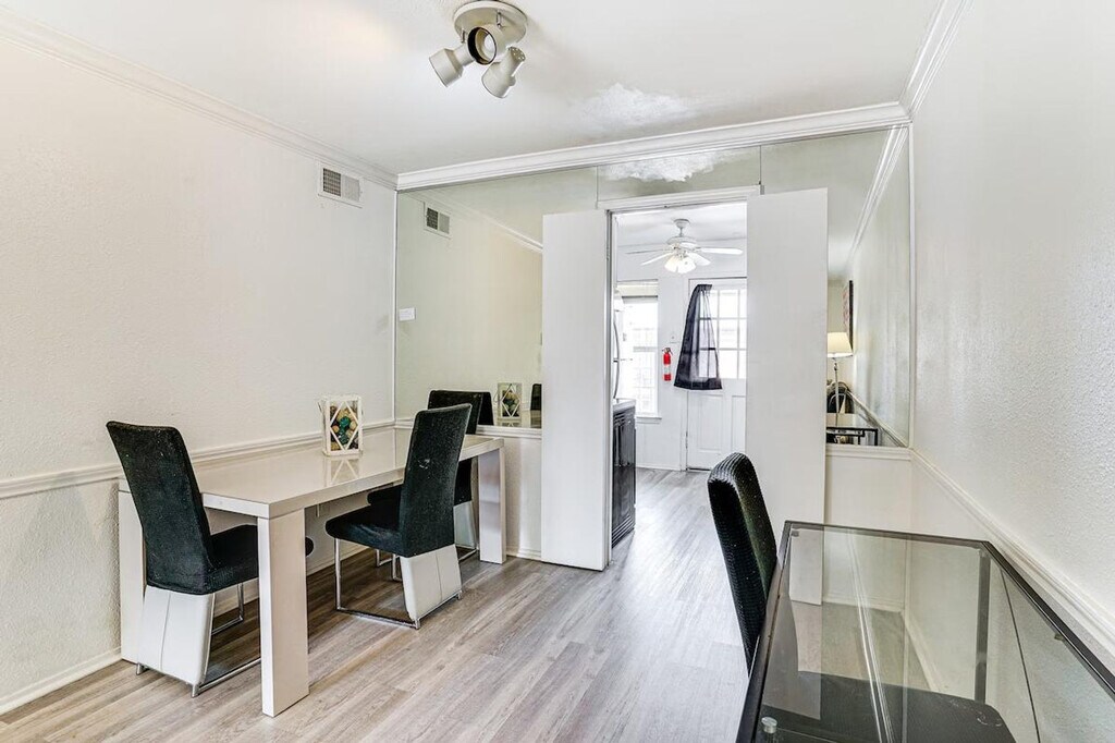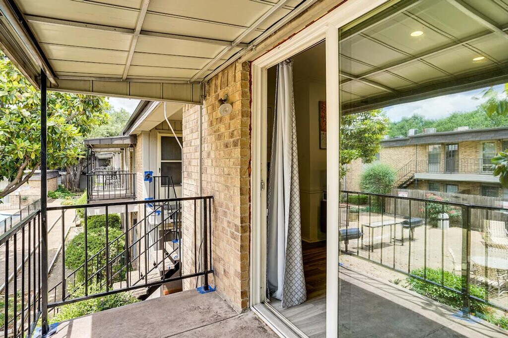 Feel at home in this 1-bedroom, 1-bath condo, located near the American Airlines Center and the Dallas Arboretum. This single-story condo is on the building's 2nd floor and requires an exterior staircase to enter. This condo features a smart TV, dining table, walk-in closet, and a balcony with a pool view. The kitchen is equipped with a refrigerator, stove/oven, dishwasher, drip coffee maker, toaster oven, slow cooker, and microwave. Cooking basics, dishware, flatware, trash bags, and paper towels are provided. Additional amenities include free Wi-Fi, central air conditioning and heating, electric heating, ceiling fans, a washer, dryer, laundry detergent, iron and board, hangers, linens and towels, shampoo and conditioner, body wash, and a hair dryer. Enjoy the community outdoor pool and BBQ area with charcoal grills, dining, and seating. This is a pet-friendly property with a $50 fee per pet (2 pets max). From rinkside thrills at the American Airlines Center to sunny days at the Dallas Arboretum, this vacation rental puts you close to it all! This property features a Ring doorbell device with an exterior security camera facing the front outdoor entry. The camera does not look into any interior spaces. It actively records video and sound when motion is detected by the device or when the video doorbell button is pressed. [SI]