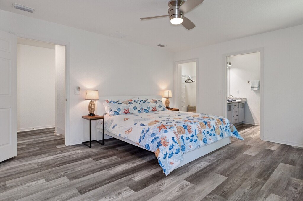 The advertised rate of $5,563/month is the lowest available price, based on a 30 day(s) stay with a move-in date of May 19, 2026. Rates vary depending on the duration of stay, season, and other parameters. For exact pricing and additional pricing components, please visit our website and enter your desired move-in and move-out dates. The rate is applicable when billed upfront; it can be higher if billed in multiple payments. Feel at home in this beautiful 3-bedroom, 2.5-bathroom duplex villa on the Homosassa River. This villa features a welcoming living room with comfortable couches and a 55-inch smart TV, along with a convenient half bath on the first floor. The dining room is located next to the well-equipped kitchen. Upstairs, the master bedroom has a king-size bed and a TV, and the master bathroom features a large shower and double sinks. The second bedroom has a queen-size bed, and the third bedroom has two twin beds. The second bathroom has a shower/tub combination and double sinks. This villa offers free Wi-Fi and a gas BBQ. You have free access to all parts of the marina resort, like your backyard, the swimming pool with pool deck, the boardwalk, or the fishing pier. Bring your own boat, as docks are available for rent and can accommodate boats up to 26 ft. The marina has direct access to the Gulf of Mexico for great fishing, dolphin watching, scalloping, and swimming. In the winter, visit the manatees at the Homosassa Springs. The community has a nice swimming pool with a large pool deck with lounge chairs. This villa sleeps a maximum of 6 people. [SI]