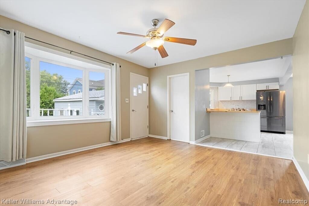 Well-maintained 3-bedroom, 1.5-bath Royal Oak home with thoughtful updates throughout. The remodeled kitchen offers abundant cabinet space, butcher block countertops, tile backsplash, and stainless steel appliances, opening to a bright and inviting floor plan with updated flooring and plenty of natural light. Upstairs, a spacious bedroom features two walk-in closets, while the entry-level bedroom is large enough to serve as a primary with hardwood floors. Exterior highlights include a fenced yard, raised garden beds, a large deck with retractable awning, and a two-car detached garage. The basement provides excellent storage or a workout space. Conveniently located within walking distance to two parks. Must submit application along with copy of two paystubs, credit report and bank statement. Pets allowed with non-refundable pet cleaning fee of $250. Other fees include non-refundable cleaning fee of $250.00.