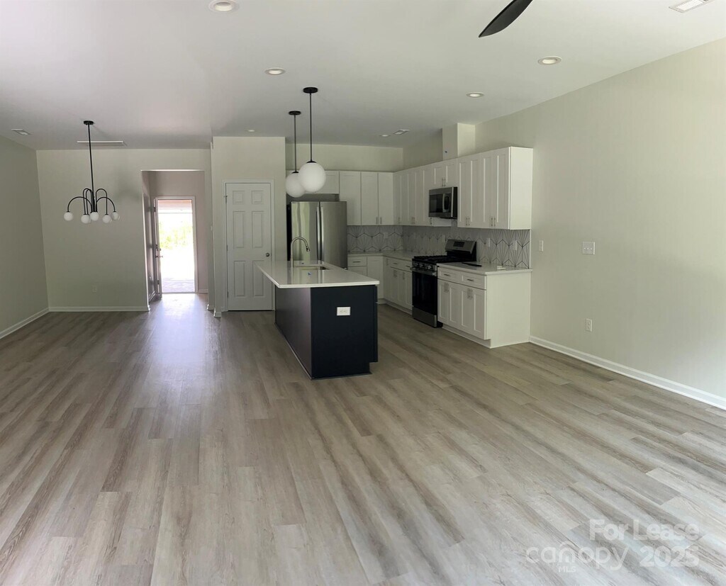 Brand new town home with designer's finishing touches. Open floor plan with a huge kitchen island,gas cooktop,storage pantry,stainless steel appliances,quartz countertop and designer backsplash. Plenty of storage space in the kitchen! Extra storage space underneath the staircase. LVP flooring throughout the whole house. Functional floor plan with 3 bedrooms and a loft area upstairs. Primary bedroom comes with a good size closet and a tiled walk in shower. Picture window let in sunlight in primary bathroom. Double sink in the guest bathroom. Large windows throughout the town home,bring in plenty of natural light. Convenient location with easy access to grocery store,coffee shop and restaurants in Mint Hill downtown,and I485. About 20 minutes drive to Charlotte uptown,South Park and UNCC.