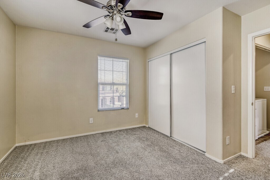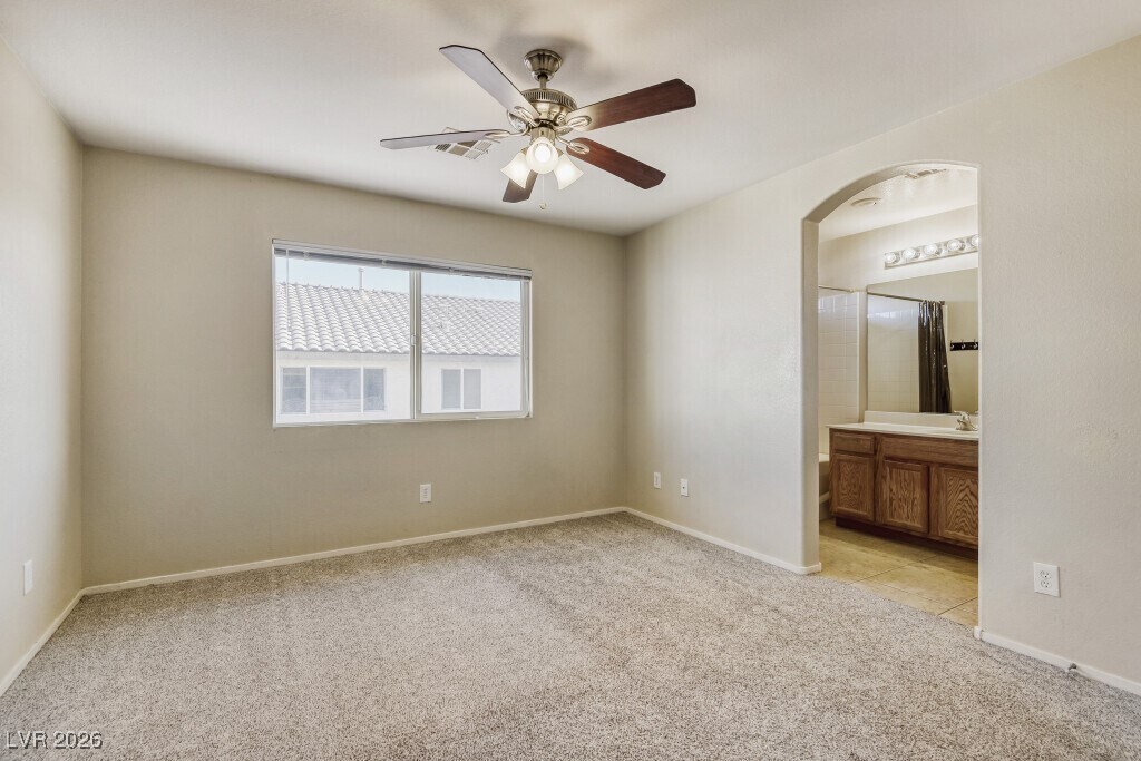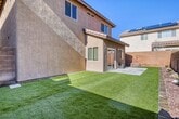 This beauty is situated in the back of a cul-de-sac in Mountains Edge. The home has access to a community pool, spa, exercise facility, clubhouse and playground. Tile flooring throughout downstairs. Living room is at the front of house. The backyard is spacious and has a concrete patio. Upstairs you will find the homes primary bed and bath, as well as the secondary bedrooms with a shared Jack and Jill bathroom and the laundry area.