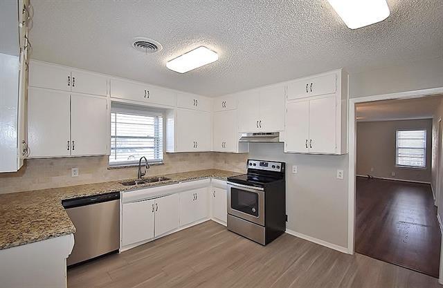 Tastefully updated 3-1 with a detached 2 car garage. The spacious open floorplan features gorgeous wood-style flooring and large windows that create a bright, airy atmosphere—perfect for hosting or quiet nights in. The kitchen has been completely modernized with sleek granite countertops, crisp white cabinetry, and stainless steel appliances. The functional layout and subway tile backsplash make it as stylish as it is practical. Spacious living & dining combo area. Well-sized bedrooms provide a quiet escape at the end of the day. Enjoy a generous yard with established shade trees, offering a perfect backdrop for summer BBQs. Detached 2-car garage, full size utility area, ceiling fans and a short commute to downtown Dallas. Truly a MUST SEE! Owner must approve all pets.