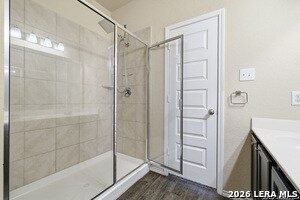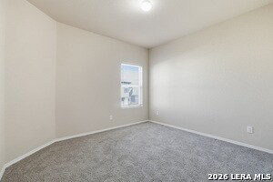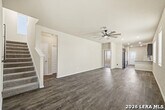 Beautiful two-story home located in the desirable Melissa Ranch subdivision. This residence offers an open-concept main living area enhanced by high ceilings that create a bright, airy atmosphere. The modern kitchen is thoughtfully designed with rich chocolate-brown cabinetry, granite countertops, stainless steel appliances, and convenient bar-stool seating-perfect for casual dining or entertaining. The primary suite is located on the main level and features a double vanity, walk-in shower, and a spacious walk-in closet. Upstairs, a generously sized loft provides flexible living space, along with three additional bedrooms. For added convenience, the home comes fully equipped with all major appliances, including a refrigerator, washer, and dryer, as well as a water softener. Ideally situated with easy access to HWY 90, Loop 1604, Lackland AFB, and surrounding destinations, this home offers comfort, style, and exceptional accessibility.