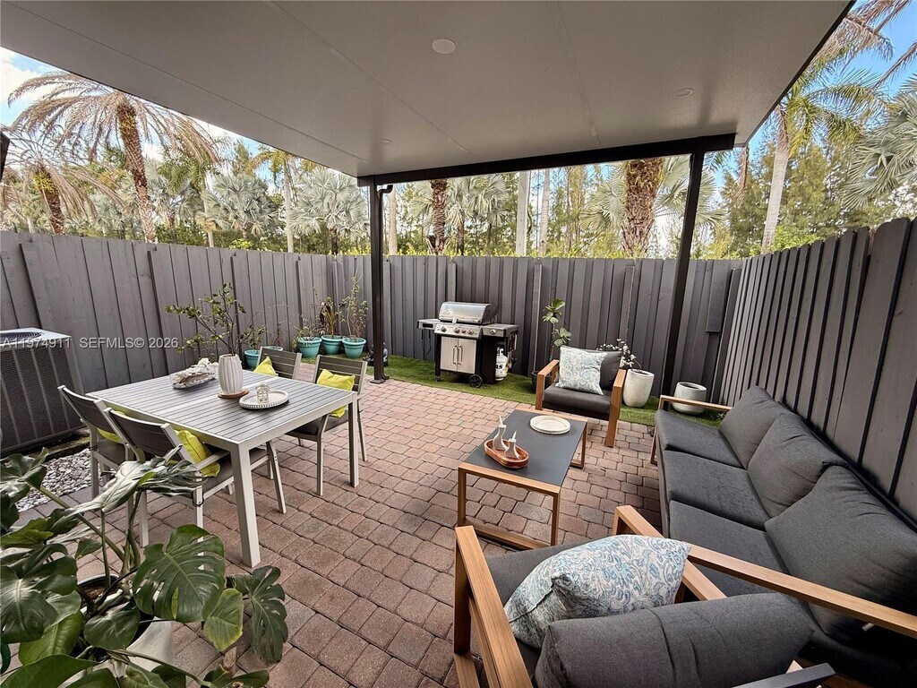 Spacious 3-bedroom, 2.5-bath townhouse located in the gated community of Astoria at Central Park in Doral. The home features a modern glass handrail and remodeled stairs, along with an upgraded kitchen offering flat-panel cabinets, quartz countertops, and stainless steel appliances. The open living and dining areas create a comfortable layout perfect for everyday living. The primary bedroom includes a large walk-in closet and a private bathroom with double sinks and a glass-enclosed shower. Two additional bedrooms share the second full bathroom, and a convenient guest half-bath is located on the first floor. The property offers a covered garage for one car, plus two additional parking spaces on the driveway. Ample guest parking is also available throughout the community. Enjoy a fully enclosed backyard with a beautiful combination of pavers and artificial turf, along with a pergola — perfect for family gatherings, BBQs, and relaxing outdoors year-round. Located just steps from the clubhouse and community resort-style amenities. A great opportunity to live in one of Doral’s most desirable communities. MLS # A11974911