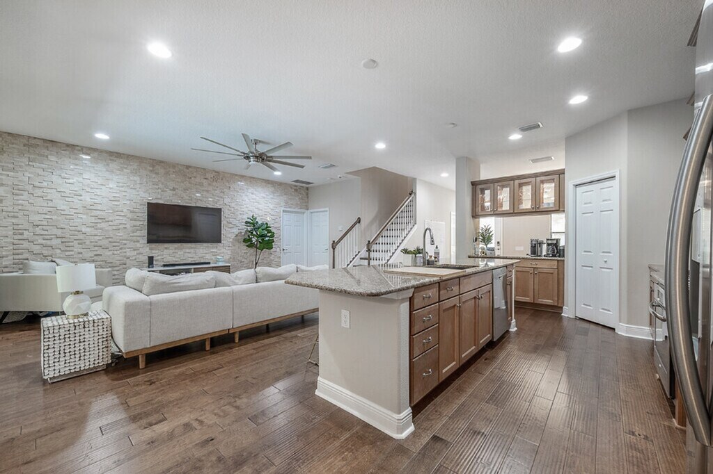 The advertised rate of $13,911/month is the lowest available price, based on a 30 day(s) stay with a move-in date of July 31, 2026. Rates vary depending on the duration of stay, season, and other parameters. For exact pricing and additional pricing components, please visit our website and enter your desired move-in and move-out dates. The rate is applicable when billed upfront; it can be higher if billed in multiple payments. Feel at home in this house that is available for monthly rental from April 15 to December 31, 2023. This home, less than 5 years old, boasts 3 en-suite rooms and 2 additional bedrooms and is located in a small gated community. The open-concept kitchen/living room and upstairs loft with a custom couch and hangout area provide ample space to relax. Enjoy the beautiful, relaxing lanai with a super private pool. This home is thoughtfully stocked with children's toys, books, games, and more, making it family-friendly and fun for all ages. There are 6 Smart TVs throughout the home, plus a gaming console loaded with over 50 classic and modern games for endless entertainment. Private access to the Pinellas Trail is available with no backyard neighbors. The heated pool is included in the rental rate. Located just 4 minutes from Madeira Beach, this home provides all the essentials for a perfect beach day, including a beach wagon, chairs, umbrella, sand toys, floaties, a cooler, and plenty of beach towels. The backyard backs up to the Pinellas Trail, a scenic, paved biking and walking trail with private access right from the gated community. Blossom Lake Park, a phenomenal spot for small children to play and explore, is a short walk down the trail (less than 1/4 mile). This neighborhood is super safe and gated and is located only a 4-minute drive from Madeira Beach, 10 minutes from John's Pass, 20 minutes from Clearwater and downtown St. Pete, and 30 minutes from Tampa. There is absolutely no street parking at any time due to HOA requirements. There are 2 driveway spots available. Absolutely no parties or events are allowed, and quiet time is strictly enforced from 10 pm to 8 am. No pets are allowed. [SI]