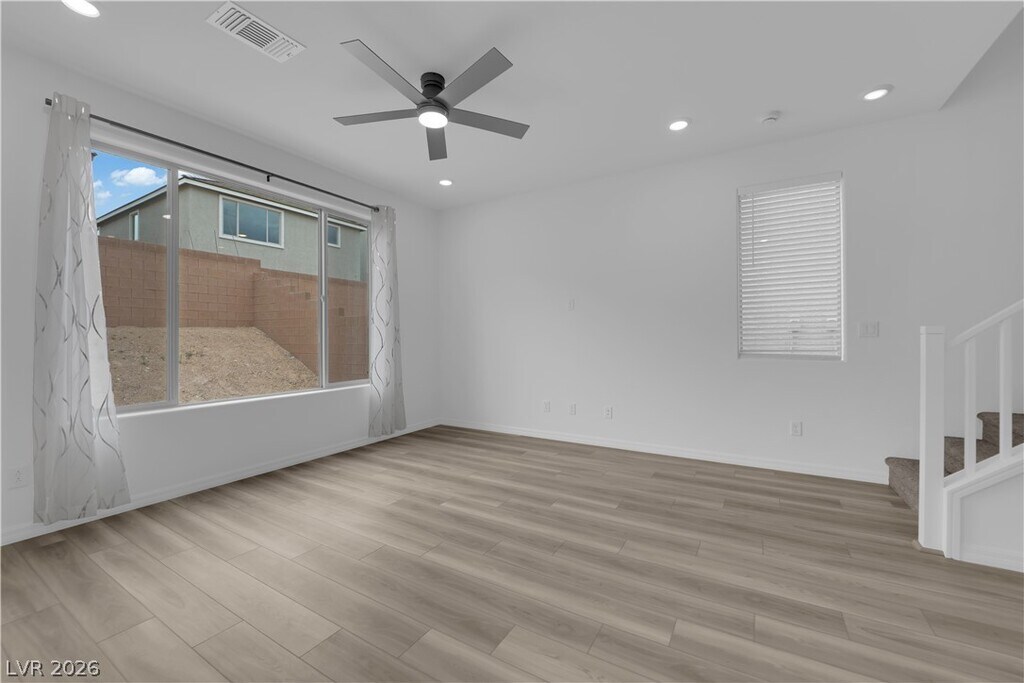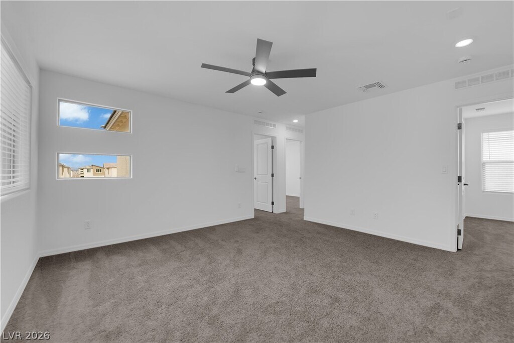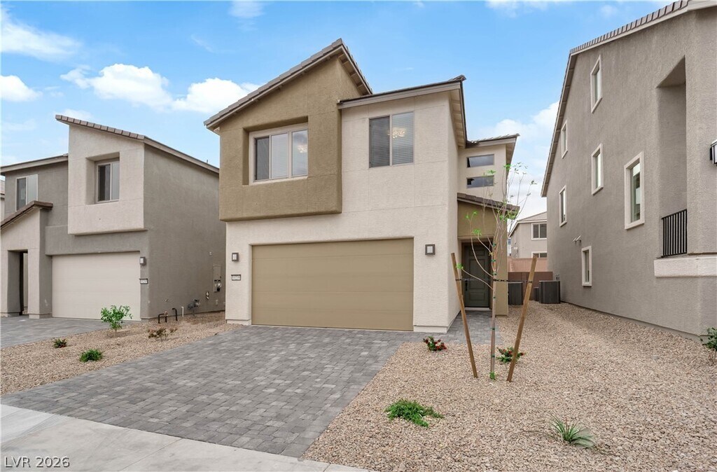 Brand New Home in the prime location of Vegas. Beautiful 2-story house 5-bedroom (1 bedroom with full bath downstairs), 3-bath home with a 2-car garage, located in Southwest Las Vegas. The open-concept living, dining, and kitchen areas feature a 9-foot ceiling, quartz countertops, stainless steel appliances, a pantry, and a large island ideal for entertaining. Window curtains & blinds throughout. Upstairs offers 4 additional bedrooms, including a spacious primary suite with a walk-in closet, dual sinks, and walk-in shower, plus a loft perfect for a home office or media space. Energy-efficient upgrades include Low-E windows, radiant barrier roof, and a tankless water heater. Enjoy a classic paver backyard (finished yard photo coming soon) for your family's outdoor entertainment. Conveniently located near I-15, Blue Diamond shopping and dining, schools, airport, Las Vegas Strip, and future high-speed rail.