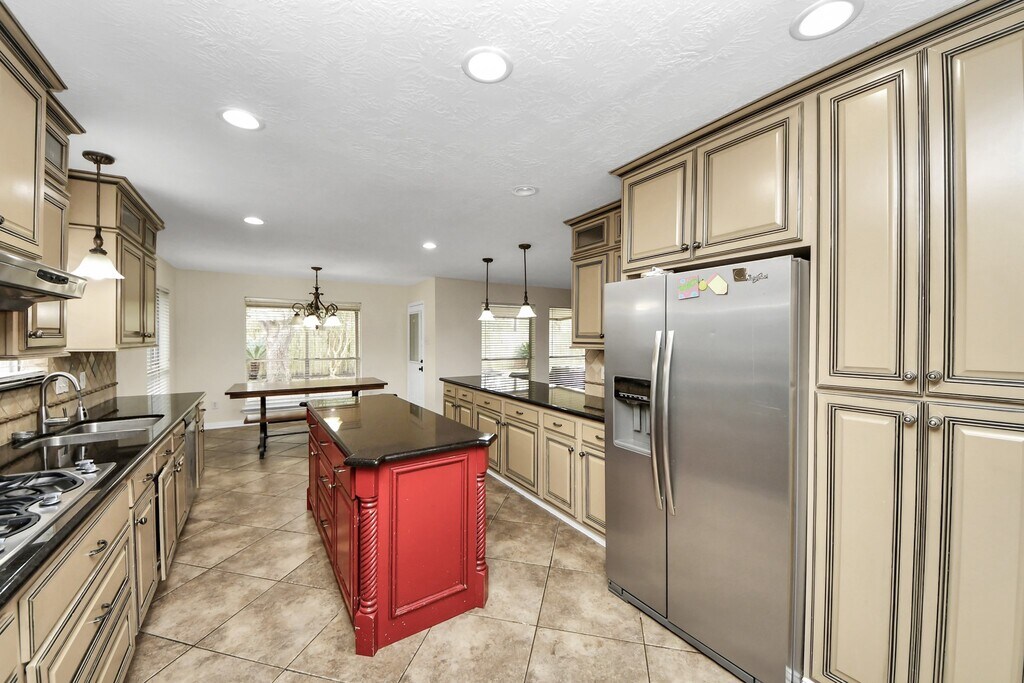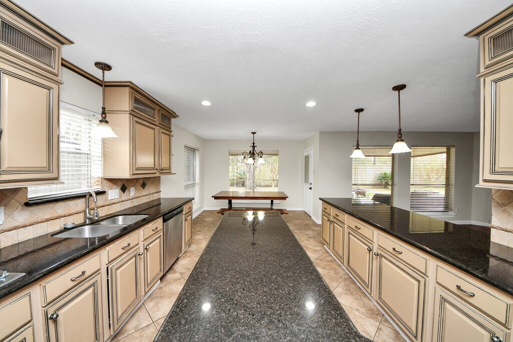 Spacious home in East Pearland! Large Island kitchen with updated cabinets,counters/backspash & more. Kitchen is open to breakfast area,den and formal. 2-story entry has marble floors and wrought iron baluster. Spacious den with corner fireplace overlooks a covered patio. Huge master bedroom down stairs with updated master bathroom,has large tile shower with dual shower heads. EZ access to I-45/Beltway 8. Nearby shopping and restaurants. MLS# 14280675