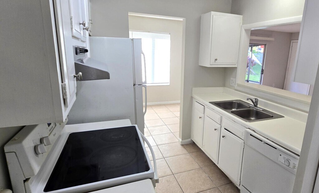 This 2-bedroom, 1.5-bathroom townhome in Kissimmee offers 1,012 square feet of living space. It includes a range, refrigerator, dishwasher, washer, dryer, and blinds. The downstairs features ceramic tile, while the upstairs has brand-new carpet. There’s a screened porch, a one-car garage, and access to a community pool and basketball/tennis courts. Monthly rent is $1695, with water and lawn care included. One car garage.