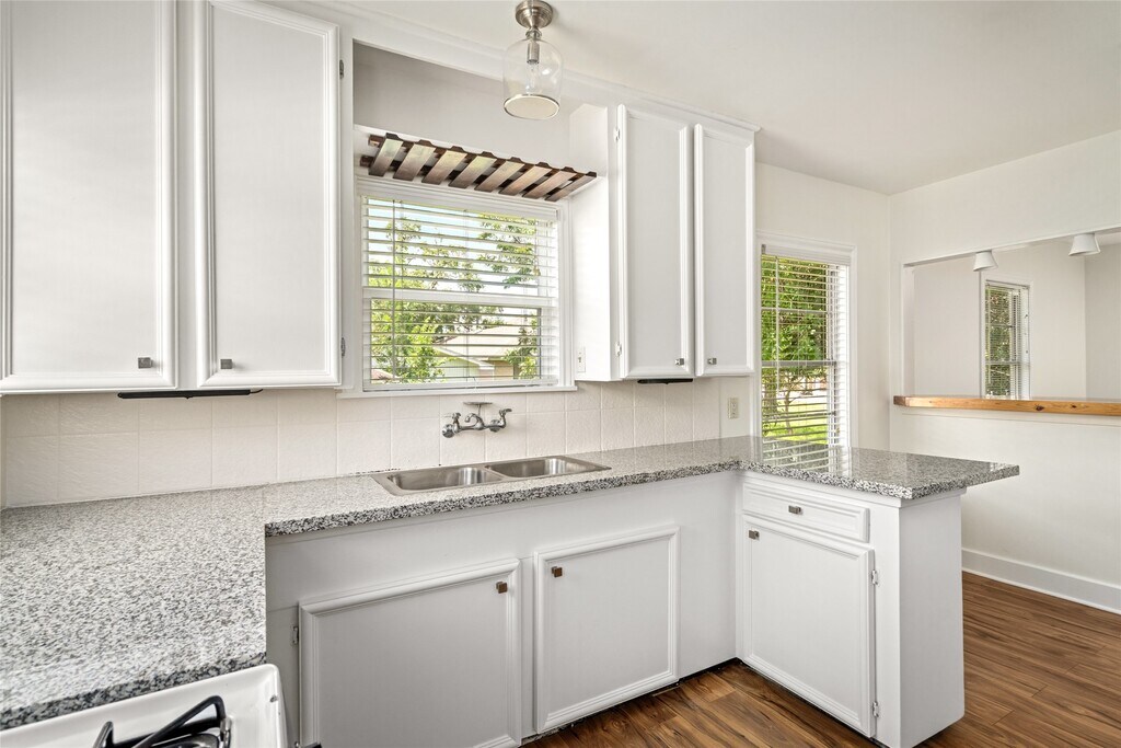 Available now! Cozy Shady Acres bungalow full of vintage charm and modern updates. Features 3 bedrooms (or 2 + a study) and 1 full bath with original tile. Gleaming original hardwood floors granite countertops,and sparkling kitchen appliances—including gas stove,fridge,dishwasher,and microwave. Spacious living and dining rooms with arched entries and abundant natural light. Large tree-shaded lot with patio—perfect for entertaining. Includes covered 2-car carport plus additional parking. Shared laundry with full-sized washer/dryer located in garage building. Bonus: 1 bed/1 bath garage apartment in back also for rent. All per Landlord MLS# 67609175