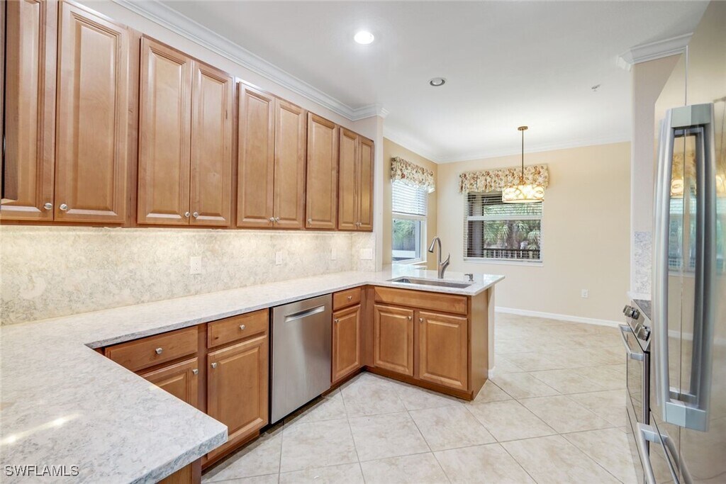 UNFURNISHED ANNUAL RENTAL AVAILABLE NOW AT $3,200/MONTH. WATER,GARBAGE,AND LANDSCAPING INCLUDED. Discover comfort,privacy,and thoughtful upgrades in this rarely available end-unit coach home located in the desirable gated community of Hawthorne. Situated in the Hideaway Cove section,this spacious 3-bedroom,2-bath residence with a 3-car garage offers just over 2,100 sq. ft. of refined living space designed for both relaxation and entertaining. The kitchen has been beautifully updated with Cambria Quartz countertops and backsplash,complemented by new Bosch stainless steel appliances for a modern touch of style and performance. Enjoy casual meals in the breakfast nook or host gatherings in the separate formal dining area,which is perfect for any occasion. The primary suite features an en-suite bath with granite countertops,a comfort-height Kohler toilet,and frameless glass enclosures on both the shower and tub. The guest bath mirrors these updates,creating a consistent and polished look throughout. Additional highlights include a new washer and dryer,new garage door opener,upgraded A/C system (2019),and a new water heater. Flooring includes Karastan high-end carpeting in all bedrooms and oak hardwood on the stairs and landings. All windows and the lanai are micro-screened,with the lanai also featuring Hunter Douglas privacy shades. For peace of mind,the home is equipped with impact-resistant windows and doors. Step outside to your private screened lanai and take in the tranquil preserve views which include a serene,natural setting that will remain undeveloped. As an end unit,the home enjoys abundant natural light,added privacy,and a long driveway leading to the 3-car garage,offering rare extra parking and storage. Built in 2013 by Lennar,this home showcases newer construction and numerous upgrades not typically found in comparable properties. Residents of Hawthorne enjoy 24-hour gated security,two pools,two fitness centers,tennis courts,and a variety of social amenities. Conveniently located near Three Oaks Parkway,Coconut Point,local beaches,and RSW Airport,this property is ideal for full-time Florida living. Schedule your showing today and experience the best of Bonita Springs living.