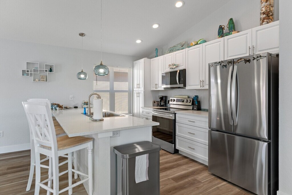 The advertised rate of $5,285/month is the lowest available price, based on a 30 day(s) stay with a move-in date of May 4, 2026. Rates vary depending on the duration of stay, season, and other parameters. For exact pricing and additional pricing components, please visit our website and enter your desired move-in and move-out dates. The rate is applicable when billed upfront; it can be higher if billed in multiple payments. Feel at home in this spacious 2-bedroom, 2-bathroom villa, offering everything you need for a relaxing vacation. The master bedroom features a king-size bed, while the second bedroom has two queen-size beds, accommodating up to six people. The master bathroom includes a comfortable stand-alone tub and a spacious shower. Enjoy entertainment with a smart TV in the master bedroom and a large smart TV in the living room. The kitchen is fully stocked, and there is a gas barbecue on ground level. The enormous porch features an outdoor dining area. Underneath the villa, there is ample room to park your cars and trailer. The villa is situated in a gated community with its own marina, fishing pier, and boat ramp for renters of boat slips. The community pool is just a short walk from the villa. There are plenty of restaurants nearby. The villa is located in a gated community. There is free Wi-Fi throughout the house (1 GB). [SI]
