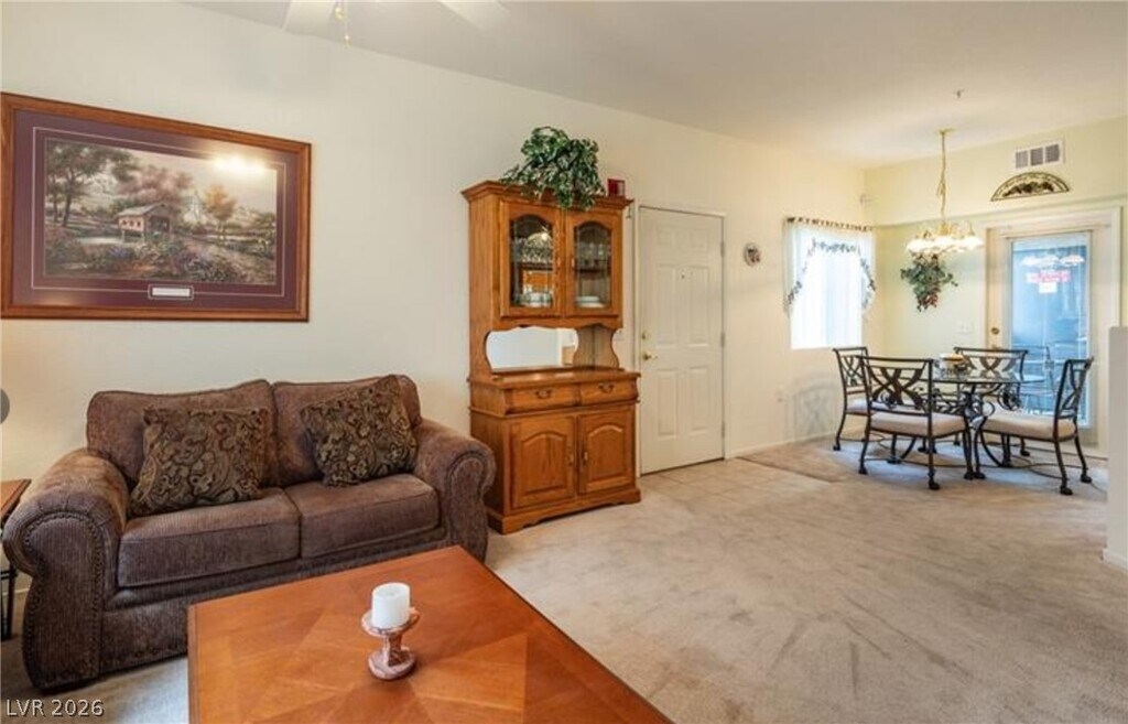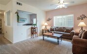 SEMI-FURNISHED Downstairs 2 Bedrooms, 2 FULL Bath condo with a DEN! The condo features a LARGE open living room along with a spacious kitchen with a pantry and extra cabinetry space! Dining Area overlooks the luscious green area in the front of the condo. Patio area comes equipped with grill & seating area. Primary bedrooms features WALK-IN closet, double sinks, BEAUTIFUL oak vanity. Primary has access to patio as well with a TON of natural lighting. GREAT location FIRST-FLOOR nicely FURNISHED in a well kept GATED community! Come see this home today! carpet fairly new and well-kept Adjacent to community pool and clubhouse. Green lucious grass with open area in front