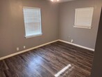 Welcome to this well-maintained and move-in ready rental home offering comfort, functionality, and great outdoor space. Inside, you’ll find durable wood-look flooring throughout the main living areas, creating a clean and cohesive feel. The spacious living room features neutral tones, a ceiling fan, and plenty of natural light. The kitchen provides abundant cabinet storage, ample counter space, and a functional layout for everyday cooking. Appliances are in place, and a convenient pass-through window connects the kitchen to the living area for added openness. The laundry area is located just off the kitchen for easy access. The bathroom has been updated with a beautifully tiled shower surround, modern fixtures, and a granite-style vanity countertop for a polished look. Outside, the light blue exterior with charming front porch adds curb appeal, while mature trees provide shade and privacy. The backyard offers additional space for outdoor enjoyment, along with a storage building for tools, hobbies, or extra storage needs.