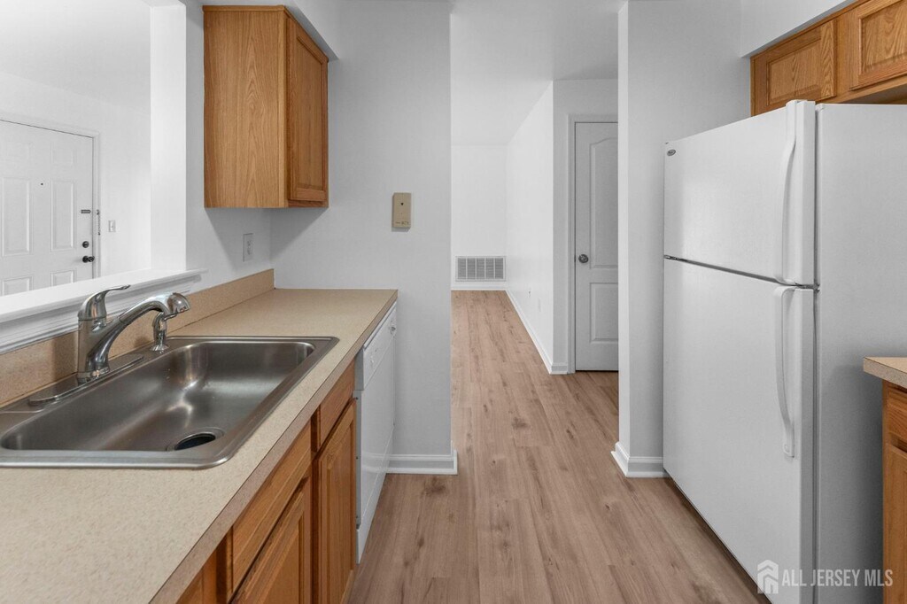 Live in style at Fulton Square! This 2nd floor updated 2-bedroom,1-bath condo offers fresh LVP flooring,new paint,and a newer AC (2024). The bright living room opens to a private deck,with a dining area and galley kitchen nearby. Enjoy two spacious bedrooms,WIC in the primary,a full bath,and in-unit laundry for ultimate convenience. Located in a secure gated community with plenty of parking,you're just minutes from Rutgers,hospitals,Downtown New Brunswick,shopping,dining,and major routes. Easy access to NYC trains and buses makes commuting a breeze.