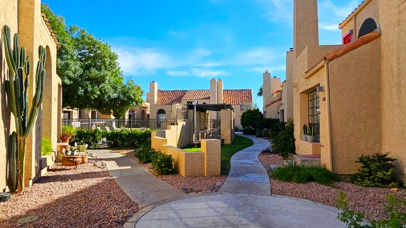 Property Id: 2317684 Light-filled end-unit townhome in the Biltmore area, fully fenced and well-maintained, located in a quiet community. The living room features vaulted ceilings, a wood-burning fireplace, and French doors that open to a newly landscaped outdoor retreat with gazebo and extra storage. Upstairs, the loft-style bedroom offers Camelback Mountain views, ample closets, an en-suite bath, and in-unit washer and dryer. Updates include designer lighting, wood-style flooring, and smart home technology. Rent covers water, sewer, garbage, internet, and an assigned carport. Community amenities are just steps away, including pool, hot tub and outdoor fireplace. Centrally located with easy access to Camelback, shopping, dining, and State Route 51. This could be your next home, contact us today to schedule a tour!