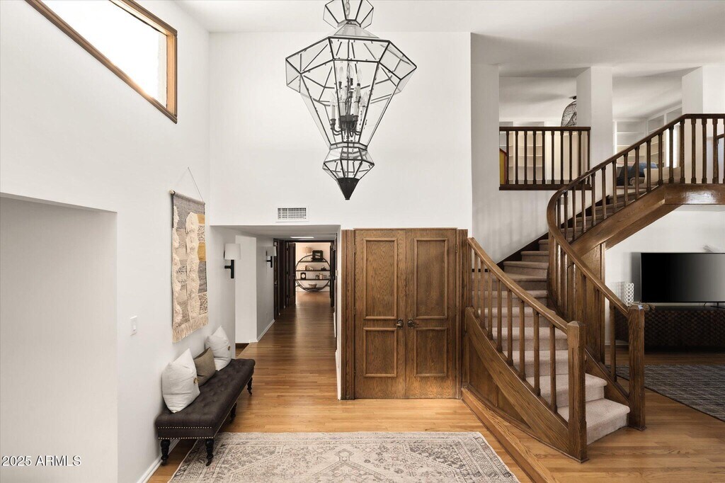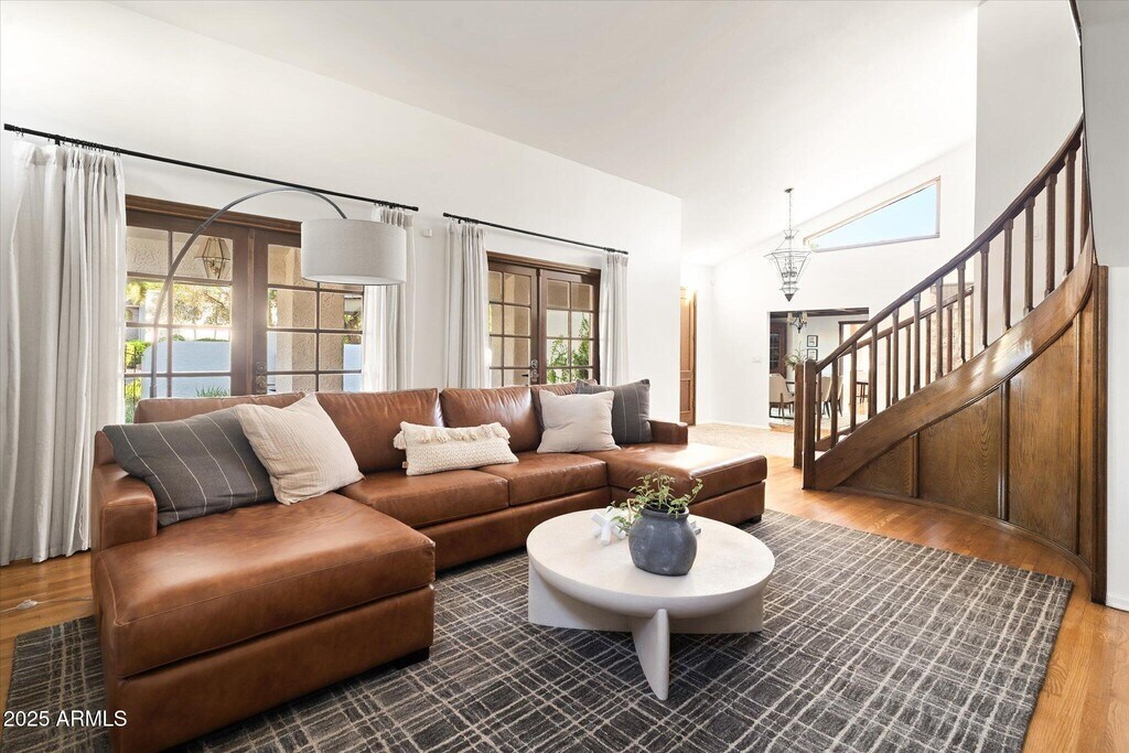 Charming Spanish style estate tucked on a quintessential North Central cul-de-sac lot. Five spacious bedrooms,four bathrooms,and two additional office/loft spaces provide ample room and privacy. Stunning vaulted ceilings,immaculate wood details,three indoor fireplaces,and built-in wet bar with custom cabinetry. Gourmet kitchen with stainless Bosch appliances,soft close cabinetry,and quartz countertops. Primary bedroom has a connected den or nursery,a spa-like bathroom and french doors to your outdoor oasis. In the backyard,enjoy a pool,low maintenance turf yard,two outdoor fireplaces all within the seclusion of your private gates. Two car garage with additional covered parking and added storage shed. Enjoy the comfort of three new AC's and a meticulously maintained home.