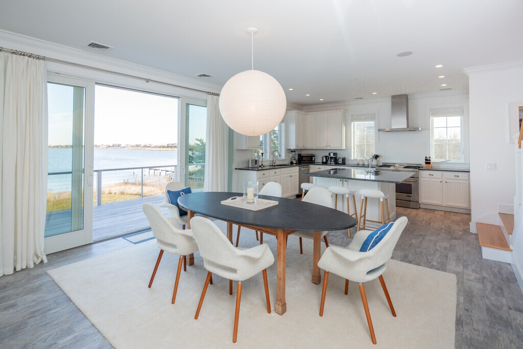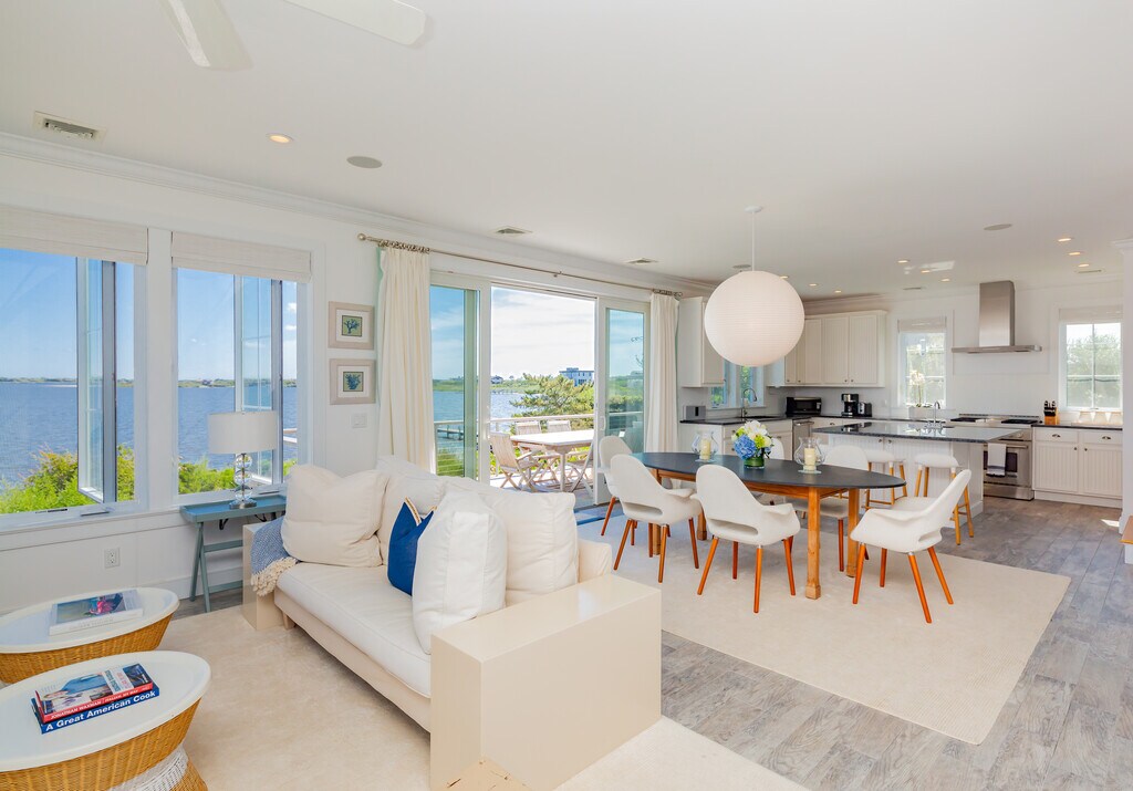 360-degress water views from every room at this delightful beach house perched on Flying Point with direct "put-in" access to Mecox Bay. This house offers an ideal open floor plan with powder room on the first floor and on the second floor, the primary en suite, two guest bedrooms and the second full bathroom. Easy, breezy, beachy living in a prime location. Amenities include a fully-modern kitchen with stainless appliances, water-facing decks on two levels with views to Channel Pond and the ocean, an outdoor shower, and its own private walkway to Mecox Bay. Only one property separates this house from ocean beach access at Flying Point, and the private walkway makes kayaking and paddle boarding easy. Very bright and beautifully furnished. Available for August and/or September as well as many other months in extended season. [[Rental Registration # RP240246]] EH RR #: RP240246 Rental Terms: August: $72,500 April: $12,000 November: $12,000 Other / Short Term - Year Round: $220,000 August - Labor Day: $75,000 October: $18,000 September: $35,000