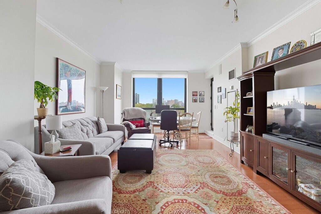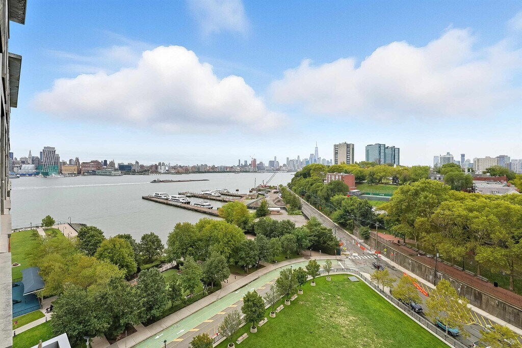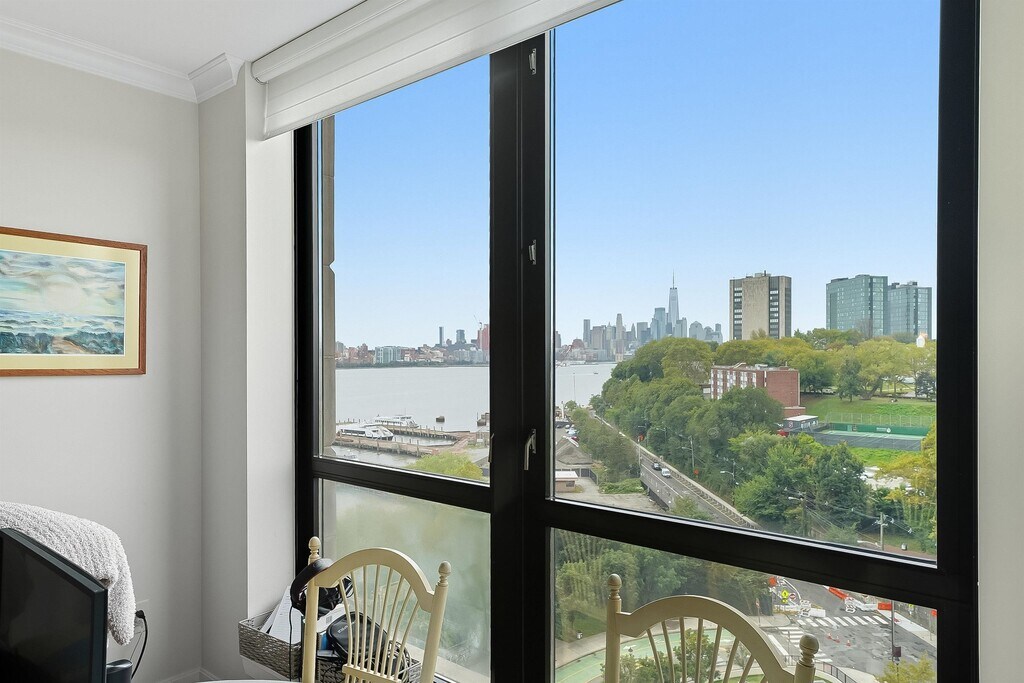 Luxury Living at Maxwell Place with southern exposure, no buildings in front of you with exquisite views of the Hudson River, downtown NYC plus overlooks Hoboken and Jersey City Skyline. This 1 Br plus large den is easily used as a 2 bedroom. Open style chef’s kitchen features custom cabinets, granite counters and stainless steel appliances overlooking the living and dining room. Come home and relax on your private balcony. Community features 24 hr concierge, 2 pools, 2 gyms, community room with Direct NYC views and theatre plus roof top gardens with bbq’s, tv and fireplace. Commuter’s dream….ferry and bus located within a few blocks or take the private shuttle to the path. Parking included. Available 11/1/25