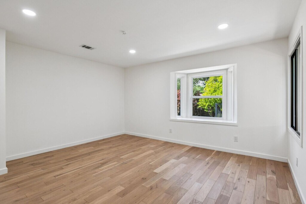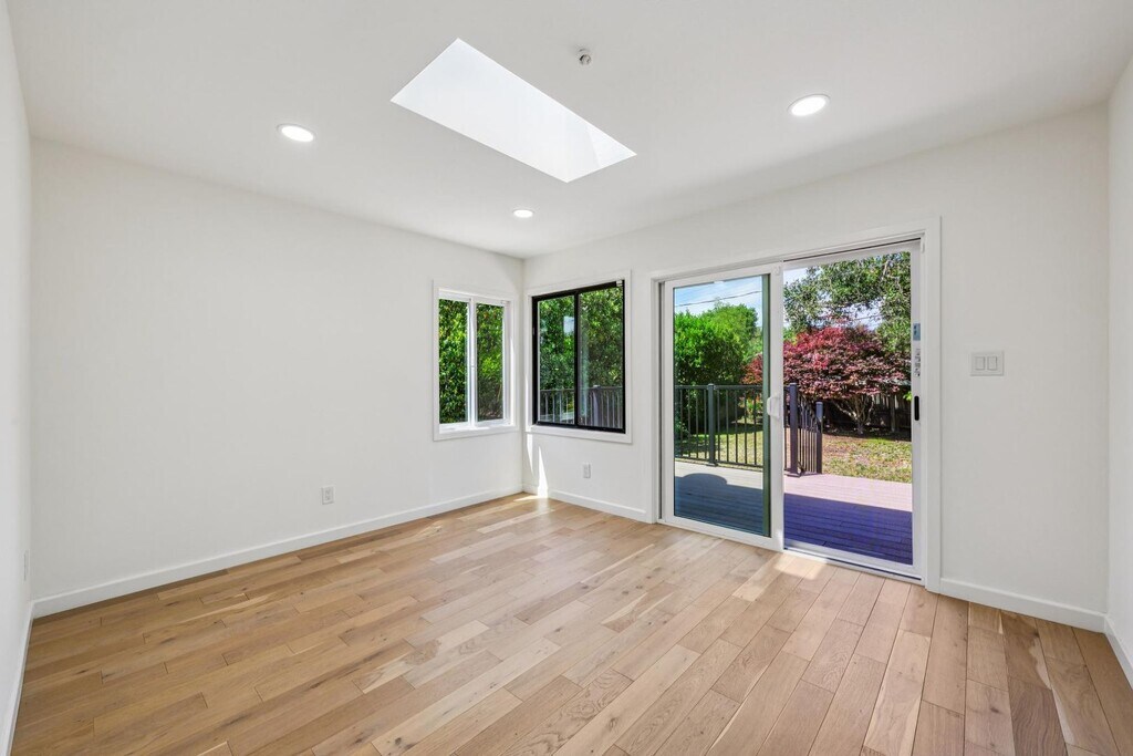 This newly remodeled Menlo Park home combines modern design, abundant natural light, and flexible living space in a highly desirable neighborhood. The main living area is bright and open, enhanced by multiple skylights that flood the space with natural light. Wide-plank hardwood flooring runs throughout, reinforcing a clean, contemporary aesthetic. The kitchen is a centerpiece, anchored by a large island with waterfall-edge countertops, a bar sink, and sleek designer cabinetry. Stainless steel appliances—including refrigerator, electric range, dishwasher, and garbage disposal—are seamlessly integrated into an open layout that flows directly into the living area. The home offers 3 bedrooms; the third bedroom does not include a closet and is best suited as a nursery, home office, or guest room with an armoire. Sliding glass doors from the third bedroom open to a spacious backyard featuring a Trex deck, lawn, and concrete patio—perfect for BBQ, entertaining, or outdoor living. The bathroom is fully remodeled with modern finishes, including a glass-enclosed walk-in shower, updated vanity, and clean, contemporary tile work. Additional features include an attached one-car garage and in-unit washer and dryer. Located in a sought-after Menlo Park neighborhood with access to Laurel Elementary (lower and upper campus), Hillview Middle School, and Menlo-Atherton High School. Tenant to verify school eligibility. Details: • Newly remodeled throughout • Skylights in main living area • Designer kitchen with island, bar sink, and waterfall countertops • Stainless steel appliances: refrigerator, range, dishwasher, garbage disposal • Remodeled bathroom with modern finishes • Hardwood flooring throughout • Attached one-car garage • In-unit washer and dryer • Spacious backyard with Trex deck, lawn, and patio Contact Robinson & Company today to schedule a private tour. Offered by Robinson & Company Realtors, professional property managers.