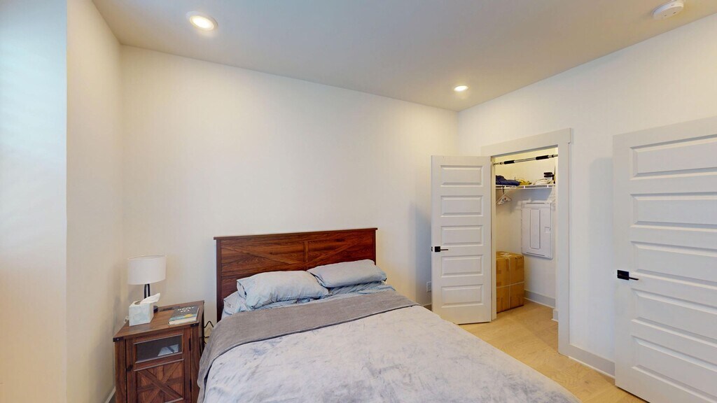 Discover elevated townhome living in the heart of Wesley Heights / FreeMoreWest, where style, comfort, and location come together seamlessly. This beautifully cared-for residence is filled with natural light thanks to expansive, near floor-to-ceiling windows, and features a show-stopping rooftop terrace with sweeping views of the Charlotte skyline—ideal for relaxing evenings or hosting guests. The modern kitchen is both functional and striking, showcasing a waterfall quartz island, soft-close cabinetry, touch-control faucet, and black stainless Samsung appliances. High-end upgrades are found throughout, including a smart home system, tankless water heater, hardwood floors on every level, plantation shutters, designer lighting, and a luxurious primary bath complete with a rain shower. Situated just steps from sought-after dining, breweries, parks, Uptown, and Bank of America Stadium, this home offers an exceptional lifestyle with the convenience of walkable city living.