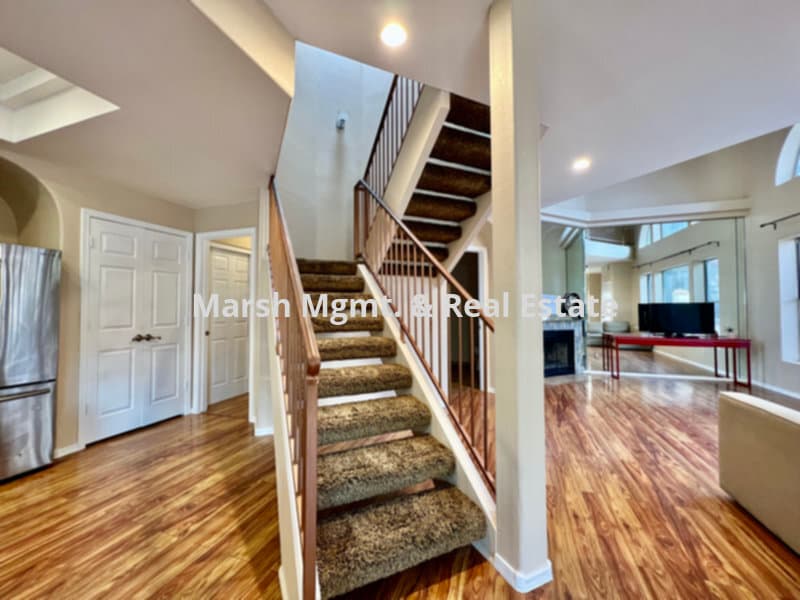 This condo has all kinds of upgrades & personality throughout! Two story condo with 2 bedrooms, full main bath with beautiful custom tile work floor to ceiling, upgraded vessel sinks & faucets, main bedroom is upstairs with it's own balcony, additional bedroom is a great size, powder room w/shower is downstairs with lovely vessel sink & tile work, kitchen has gorgeous granite & backsplash with coffered ceiling & dimmable lighting to create just the right atmosphere while cooking or entertaining, breakfast bar, stainless steel appliances, refrigerator, washer & dryer, laundry room is large with desk/work area, living room is accented with a mirrored wall & fireplace, lots of windows, dining area w/access to patios (yes, there area 2 patios & a balcony!), quaint little loft upstairs to use as a reading nook or a place to unwind, wood-look flooring, tile flooring, carpeted stairs only, single car garage & community pool. Water is paid. 1 small pet may be accepted. Please call regarding pets. Smoking or vaping of any kind is not allowed. Security deposit will equal at least one months rent. Tenant must provide proof of renters insurance prior to moving in. Please refer to Policies on Renting for important information.