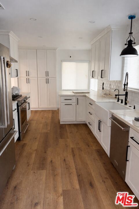 Welcome to this inviting single-story residence located on a quiet, well-kept cul-de-sac street in one of Sunland's most convenient and family-friendly pockets. Recently extensively remodeled, the home offers 3 bedrooms and 2 bathrooms with a thoughtful layout that balances comfort and functionality. The open concept kitchen is equipped with new, top-of-the-line appliances, making everyday living and entertaining easy. Light-filled living spaces flow seamlessly, creating a warm and welcoming atmosphere throughout the home. The spacious, private backyard is surrounded by mature trees, creating an ideal setting for outdoor entertaining and family gatherings. Additional highlights include a two-car garage plus driveway parking, ideal for households with multiple vehicles or guests. The property is situated in a very safe, residential area with easy access to local schools, parks, shopping, and commuter routes perfect for tenants seeking both convenience and peace of mind. This is an excellent opportunity to enjoy a well-updated home in a desirable neighborhood that truly feels residential yet connected. Tenant pays all utilities. Photos have been digitally enhanced and staged virtually by AI. MLS# 26641901