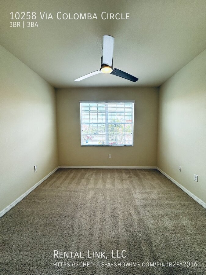 There is currently a 3 Bed 2 Bath Townhome for rent with 1,942 sq ft listed at 10258 Via Colomba Circle. It is Available May 15, 2026.