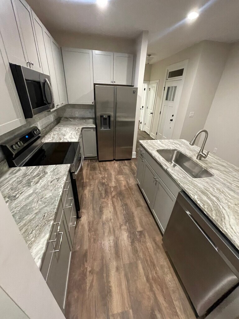4 bedroom 2.5 bath townhouse built in 2022 and recently remodeled! Hardwood(laminate) floors throughout the home, featuring 2 offices, 2 car garage, vaulted ceilingsand stainless steel appliances. The home also features a in-unit washer/dryer and CPI alarm system.