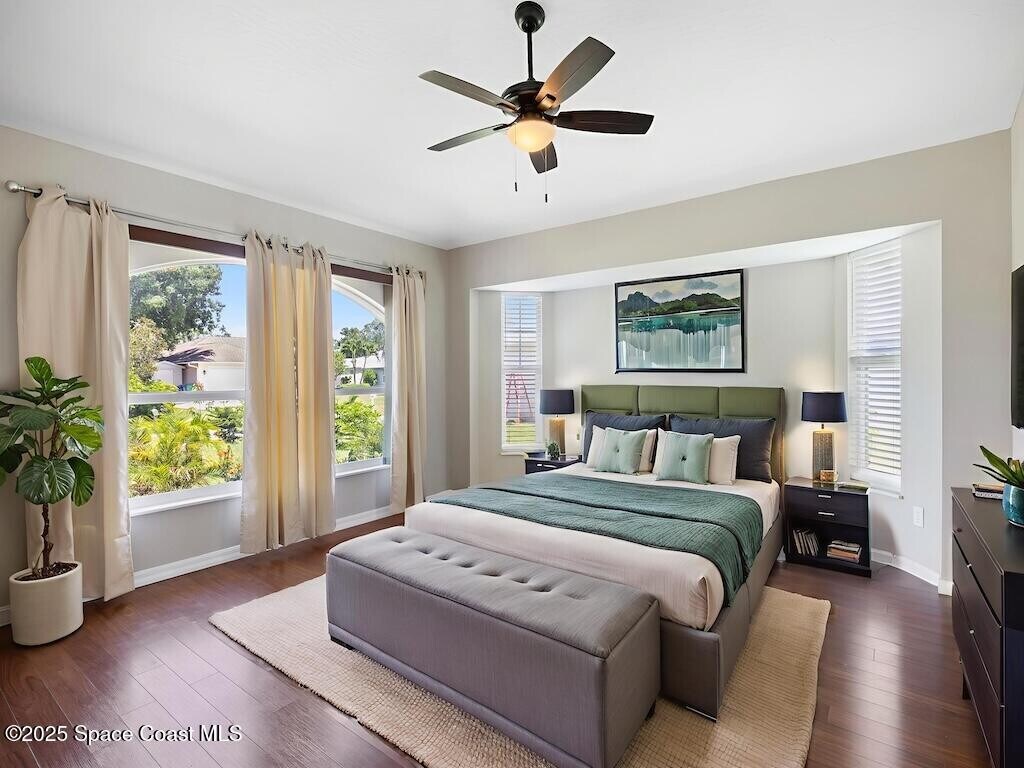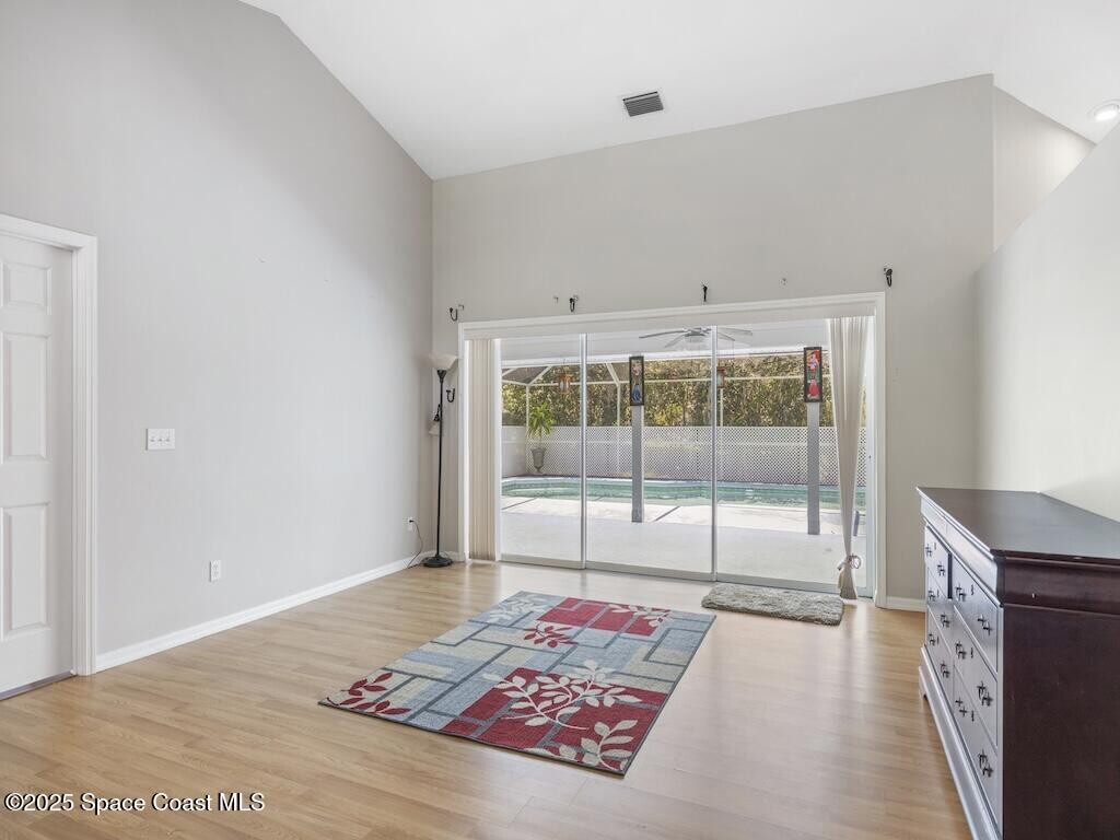 Florida Pool Paradise! Bright,open & move-in ready! NEWER roof,soaring arched ceilings,white tile & wood laminate floors. Re-piped .Triple sliders lead to a sparkling screened pool & private lanaicomplete with cabana bath + outdoor shower! Chef's kitchen boasts white cabinetry,modern lighting & pass-through bar. The luxe primary suite features dual sinks,a soaking tub,walk-in closet & private pool access. Washer/dryer included. Fruit and vegetable Trees all around property. This is the one everyone will be talking aboutdon't miss it!
