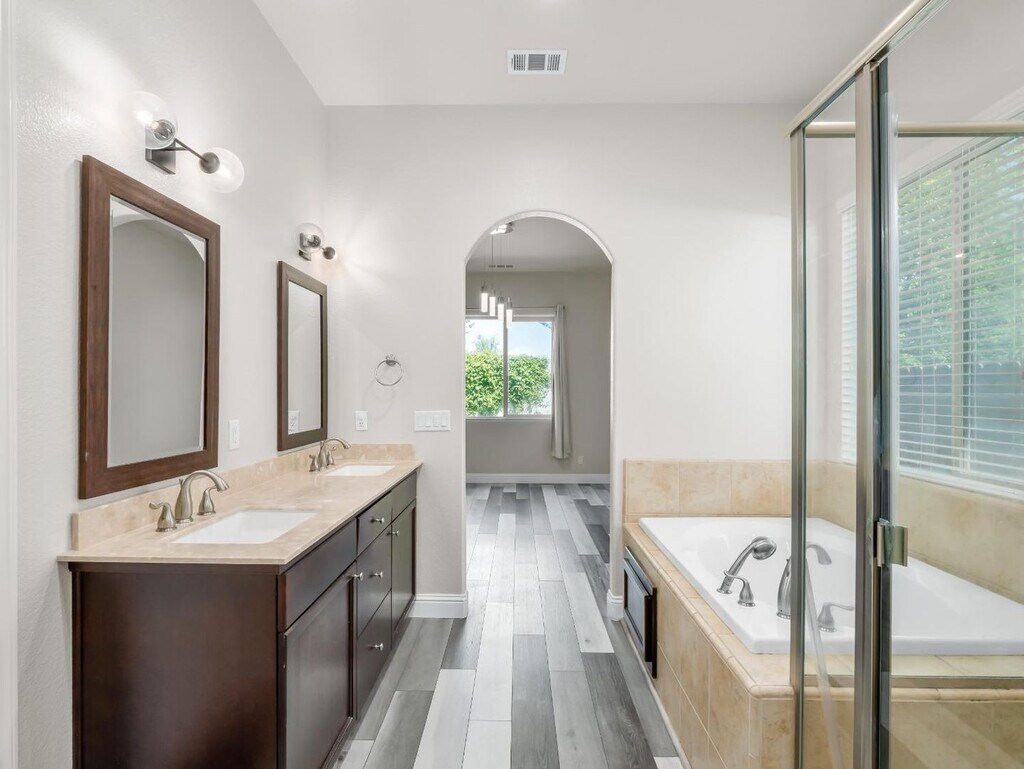 Welcome to your beautifully upgraded family home. This Granville-built property features an open-concept floor plan with a newly updated kitchen, oversized island perfect for cooking and entertaining, and easy-to-maintain custom flooring throughout—no carpet. The home also includes spa-style upgrades such as a jetted tub and upgraded toilets, a spacious backyard, and a 2-car garage. Modern conveniences include Tesla solar panels, a brand-new smart garage door, smart thermostats, and a smart doorbell system. LOCATION! Situated in one of the top-rated zip codes in California, this home offers incredible convenience—just a 5-minute walk to Fugman Elementary School, a 3-minute drive to Clovis North High School and Clovis Community College, and a short 5-minute walk to the scenic Woodward Park trails. Enjoy nearby dining and shopping just minutes away at Heirloom, Anesso Pizzeria, and River Park Shopping Center. Tenant is responsible for all utilities and landscaping. Refrigerator, washer, dryer, and solar system are included.