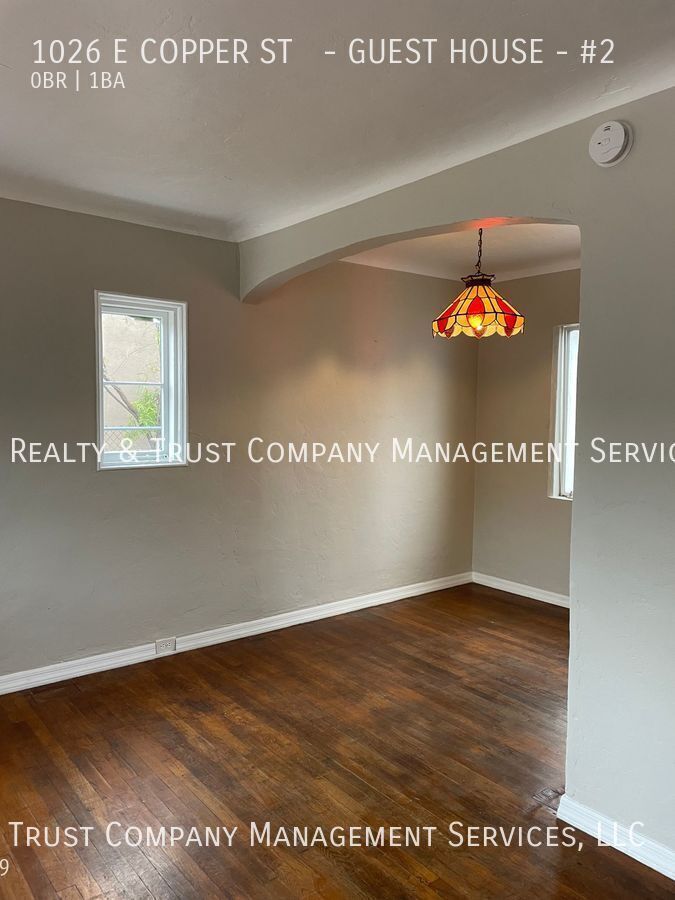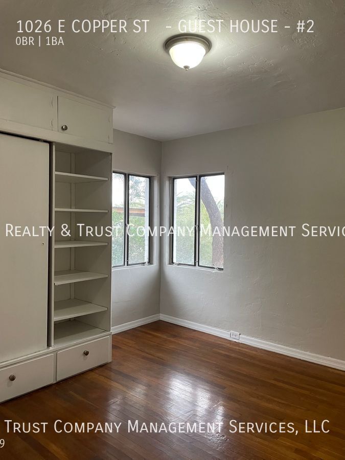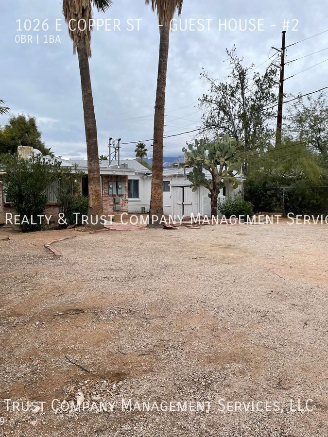 Welcome to Guest House Studio, located in the vibrant city of Tucson, AZ. This cozy studio apartment offers a comfortable living space with a modern touch. Step inside and be greeted by ceramic tile throughout, providing a sleek and easy-to-maintain flooring option. The kitchen is equipped with a refrigerator and gas stove, perfect for preparing delicious meals. Natural light fills the space, complemented by blinds that offer privacy when desired. We understand the importance of pets in your life, which is why pet screening is required to ensure a harmonious living environment for all residents. With its convenient location and essential amenities, Guest House Studio is the ideal choice for those seeking a compact yet functional living space in Tucson. All information deemed reliable but not guaranteed. Please contact our office to confirm pricing, availability and details at . Tucson Realty & Trust Co. Management Services, L.L.C. complies fully with all federal, state and local Fair Housing laws. To schedule your Showing call after November 24, 2025. This is a fully automated system. We do not advertise on Craigslist or Facebook, nor would we require funds to be wired or any funds paid through a payment app on your mobile device. Any and all communications or questions should be directed to our office. Applications will not be processed until the home has been viewed. All information deemed reliable but not guaranteed. Tucson Realty & Trust Co. Management Services, L.L.C. complies fully with all federal, state and local Fair Housing laws.. Blinds Ceramic Tile Throughout Gas Stove Pet Screening Required