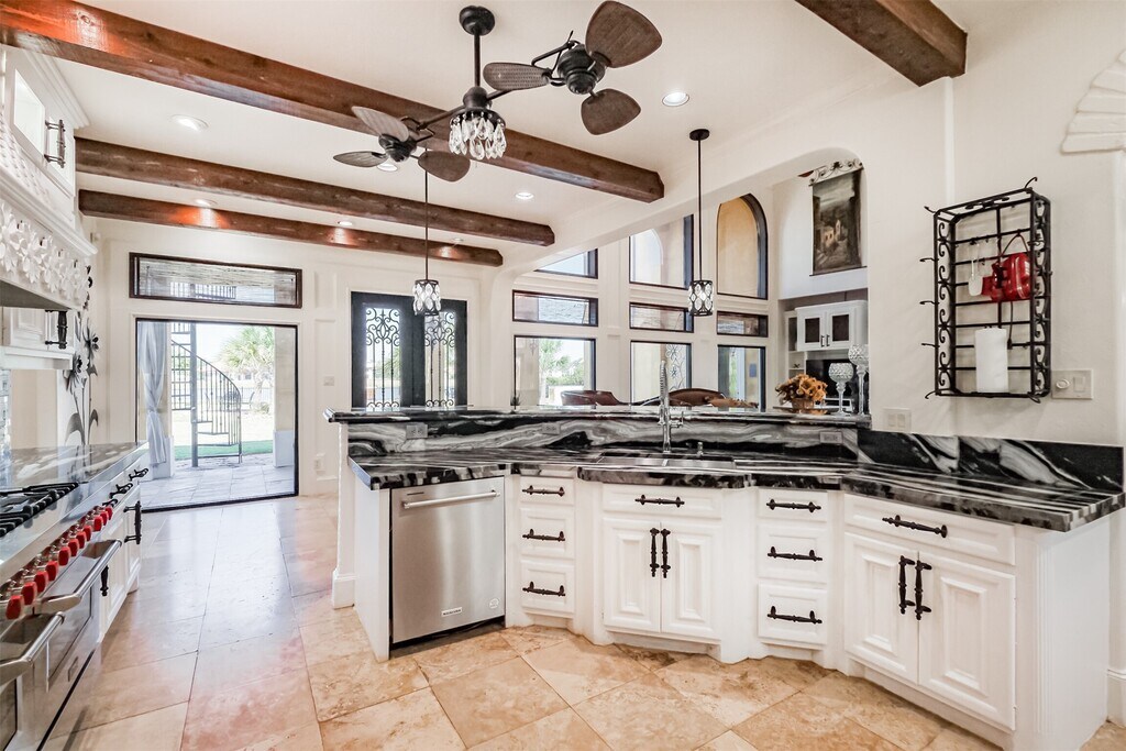 Discover refined lakeside living in this Mediterranean-style estate featuring 4 expansive bedrooms with king beds and upscale designer furnishings. Includes 3.5 luxurious baths adorned with granite and imported Zebra Italian marble. Travertine flooring throughout,with plush carpet in the media room and one closet. The chef’s kitchen stuns with floor-to-ceiling custom cabinetry,illuminated glass uppers,5-ft DECO vent hood,4 ovens,6-burner gas cooktop with grill,pot-filler,and premium stainless appliances. Four oversized garages,with 2 converted into a private gym. Enjoy 3 remote-controlled fireplaces,and elegantly appointed bathrooms with mirrors extending to the ceilings. Entertain in the media room with 80” TV or unwind in the sophisticated billiards room. Outdoor spaces include a large main patio and 9 additional terraces with captivating lake views. A true blend of elegance,comfort,and lifestyle. MLS# 16792884