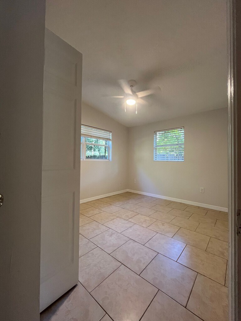3 Bedroom / 2 Bath – Recently Remodeled Home Step into this beautifully remodeled 3-bedroom, 2-bath concrete block home featuring an updated kitchen with new cabinets, countertops, and appliances, Brand-new roof, and fresh interior paint. Highlights: Primary bedroom has a private bathroom All bedrooms feature ample closet space with shelving Large open kitchen overlooking the dining room, and living room. Sliding glass doors open directly to the fenced backyard – perfect for outdoor living Huge utility room with a separate entrance – ideal for laundry, storage, or a mudroom setup Bright, open layout. This home is move-in ready and offers the perfect combination of comfort, functionality, and privacy. Contact Stewart Realty & Management today to schedule your showing!