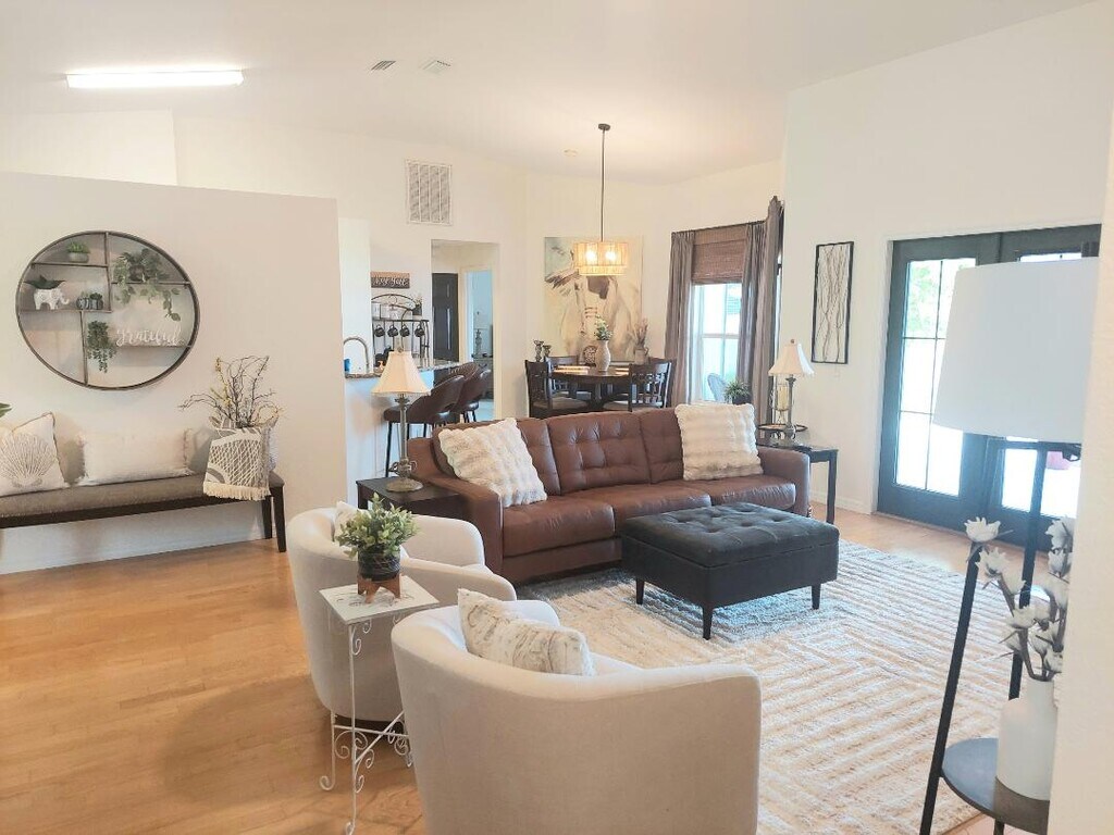 Beautiful, immaculate lakefront home located in a small secluded neighborhood. Perfect getaway for anyone wanting to wind down and relax. Enjoy picking your own delicious mango's from one of our 5 Mango trees on the property. Fully furnished. Fully stocked kitchen, dishwasher, washer and dryer. Home also offers 2 bedrooms with Queen beds and smart tvs. 1 bath with walk in shower. Living area with 85" smart tv. Separate office with desk and comfortable chair for anyone needing to work remotely. Wifi included. This property is convenient to many hospitals for traveling professionals. Many dining places and stores within minutes! Located with 15 minutes from downtown Winter Haven where you can enjoy weekend community fests and markets, along with trendy pubs and local restaurants. No smoking, no pets policy. This wonderful property is available from April 1st to Dec 1st only, since it is our winter home. One month minimum contract required.