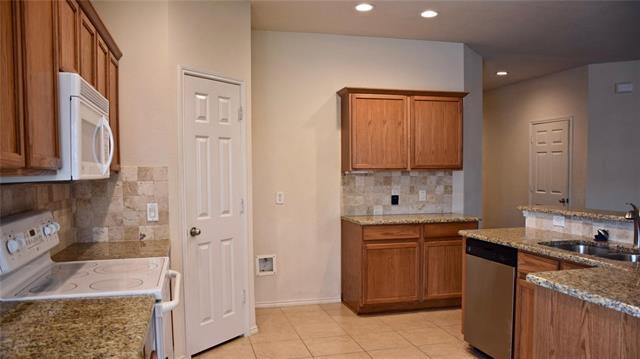Immaculately maintained 3-bedroom, 2 bathroom zoned for Mansfield ISD! Welcome Home to an inviting space that combines efficiency, comfort and style! Enjoy a thoughtful layout designed to give plenty of room for everyday living or entertaining. Enter into the home and you'll find a large open space where living room, dining room and kitchen flow together seamlessly. The large open kitchen is sure to keep any chef happy, adorned with an abundance of cabinets, beautiful granite countertops with stone backsplash and walk in pantry The dining area is great for gathering around the table, while the kitchen breakfast bar gives an option for a more casual eating space. The kitchen opens to the living area, creating a sense of inclusion between the two spaces. Primary bedroom sits at the rear of the home and has views of the lush large backyard. The en suite bathroom was designed with comfort and relaxation in mind, offering a deep soaking tub, separate shower, extended dual sink vanity and great walk-in closet. Secondary bedrooms are set toward the front of the home, giving maximum privacy to the primary suite. All bedrooms are sizeable, and all have generous closet space. Attention to the details make this home spectacular. Modern finishes, lots of windows and natural light and hard flooring throughout add to the aesthetic appeal. Ceiling fans in living room and all bedrooms provide added comfort! Relax in the backyard under the covered patio, perfect for enjoying the outdoors in any kind of weather. Yard gives plenty of space for play, entertaining, soaking up the sun, or gazing at the stars. For more outdoor fun, the community amenities include a pool, playground, and greenspaces! Home is in an ideal location, with easy access to highways, shopping, dining and green spaces. Well rated Mansfield ISD. Come view today!