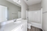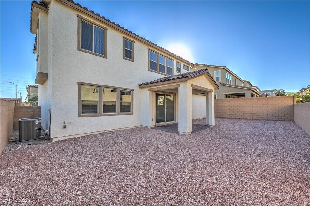 Located in a gated neighborhood within the highly desirable Skye Canyon master plan, this 1,731 sq. ft. home offers modern style and easy living just one block from the community center. The open layout includes a spacious great room with wood-look tile, a separate dining area, and a beautiful kitchen featuring quartz countertops, stainless steel appliances, a large island, and double pantry. A wide sliding door opens to a covered patio and oversized backyard—perfect for outdoor enjoyment. Upstairs, the primary suite includes dual sinks, an oversized walk-in shower, and a roomy walk-in closet. Two additional bedrooms and an upstairs laundry add convenience. Enjoy gated security, community amenities, and a prime location in one of Northwest Las Vegas’ most sought-after neighborhoods.