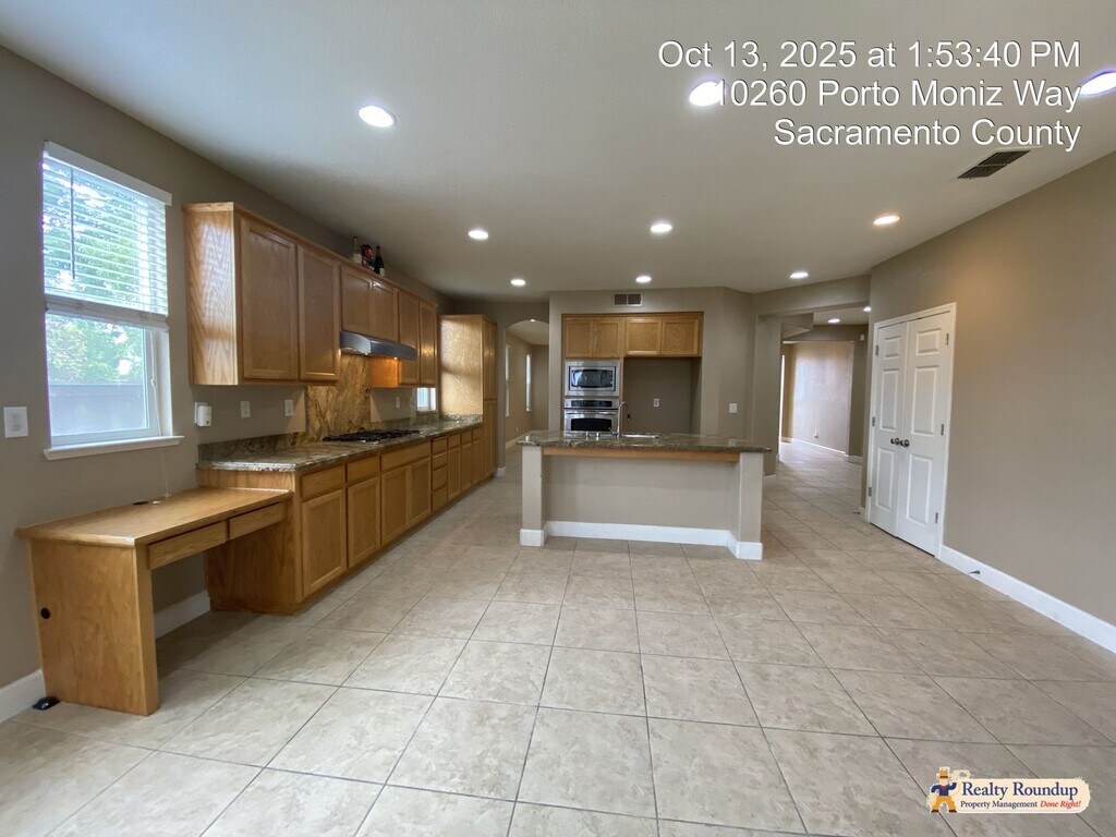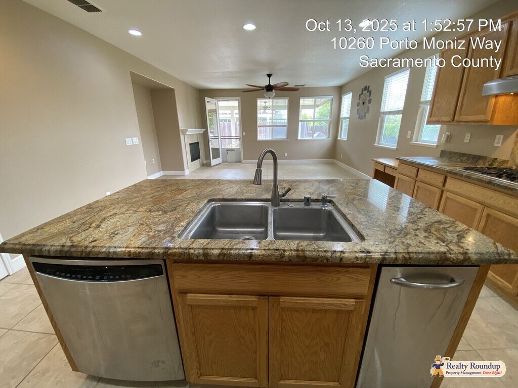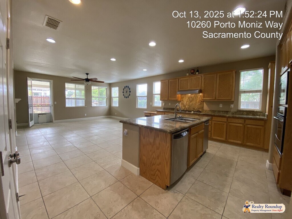 This spacious, well-maintained single-story home has four bedrooms and three full bathrooms. Large primary bedroom in the rear of the home and smaller second primary bedroom in the front of the home, both with private bathrooms. Jetted soaking tub and very large walk-in closet in rear primary bathroom. Open kitchen with granite counter tops, stainless steel appliances, five burner gas cooktop, wall oven, built in microwave, dishwasher, garbage disposal, center island, desk area and a large double door pantry. Tile flooring in main living areas and carpet in the bedrooms. Family room has a gas fireplace and great natural light. Laundry room has laundry sink, storage cabinet and shelf with clothing bar. Ceiling fans with lights in living room, family room and all bedrooms. Two-car garage has wall and ceiling mounted storage shelves. Low maintenance landscaping, built in BBQ with a large covered patio with ceiling fan in rear yard. Tenant responsible for front and rear landscaping. Tenant pays all utilities: water, sewer, trash, storm drain, gas and electric. Tenant to provide refrigerator, washer and dryer. No pets. No smoking. No co-signers. Property offered on a 12-month lease term. Move In Bonus of $500.00 off the first month’s rent. Garbage compactor in kitchen does not work and provided as-is. All Realty Roundup residents are enrolled in the Resident Benefits Package (RBP) for $45/month which includes quarterly HVAC filter delivery, liability insurance, credit building to help boost the resident’s credit score with timely rent payments, up to $1M Identity Theft Protection, move-in concierge service making utility connection and home service setup a breeze during your move-in, our best-in-class resident rewards program and much more! To get the most out of the RBP residents can upgrade into our premium RBP package for ($59.95/month) which includes on-demand pest control. More details upon application. PROPERTY TOURS: 1) It is recommended that you view the online virtual tour and photos of the home. 2) Please drive by the home to make sure it's a neighborhood you like. 3) Submit your completed application online at www.realtyroundup. com 4) Upon approval for the property, you must then view the property with one of our staff, prior to paying your security deposit.