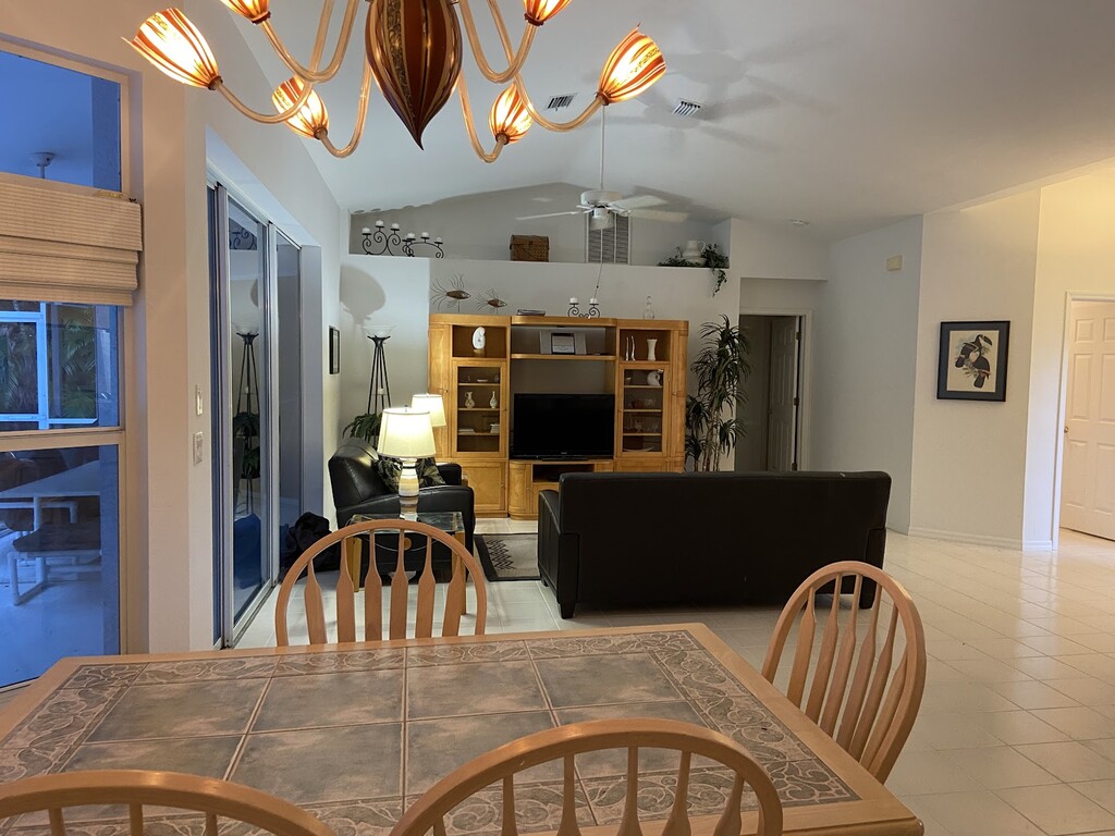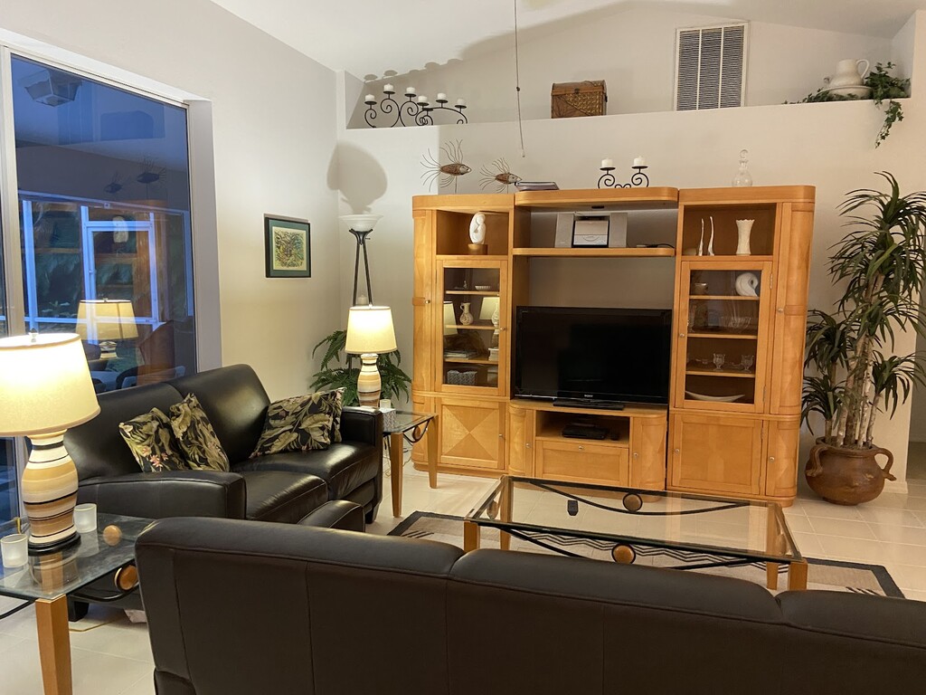Available NOV-DEC 2025 then APR+ 2026 - Off-season weekly rates upon request. ALL INCLUSIVE monthly rate May to Dec 19th $5,000/mo. Dec 20th to Apr $7,420/mo. (rent, tax, cleaning, utilities, cable/wifi, damage waiver all included). Short term vacation rental. NEW KITCHEN, NEW FLOORING! This well appointed 2 Bedroom plus den (sleep sofa) 2 Bath turnkey furnished pool home is ready for your enjoyment. Highlights include quality furnishings and accessories - a caged / heated swimming pool - large lot with a nicely landscaped private back yard - close to Coconut Point and white sandy beaches! Clean, pristine and comfortably accommodates 2-6 guests. Call for our easy booking details. With close proximity to the airport, restaurants, shopping and many natural and man-made attractions, this vacation rental will make your getaway experience one to remember. Call Shane for more details. Shane & Nancy Brown Starlink Realty