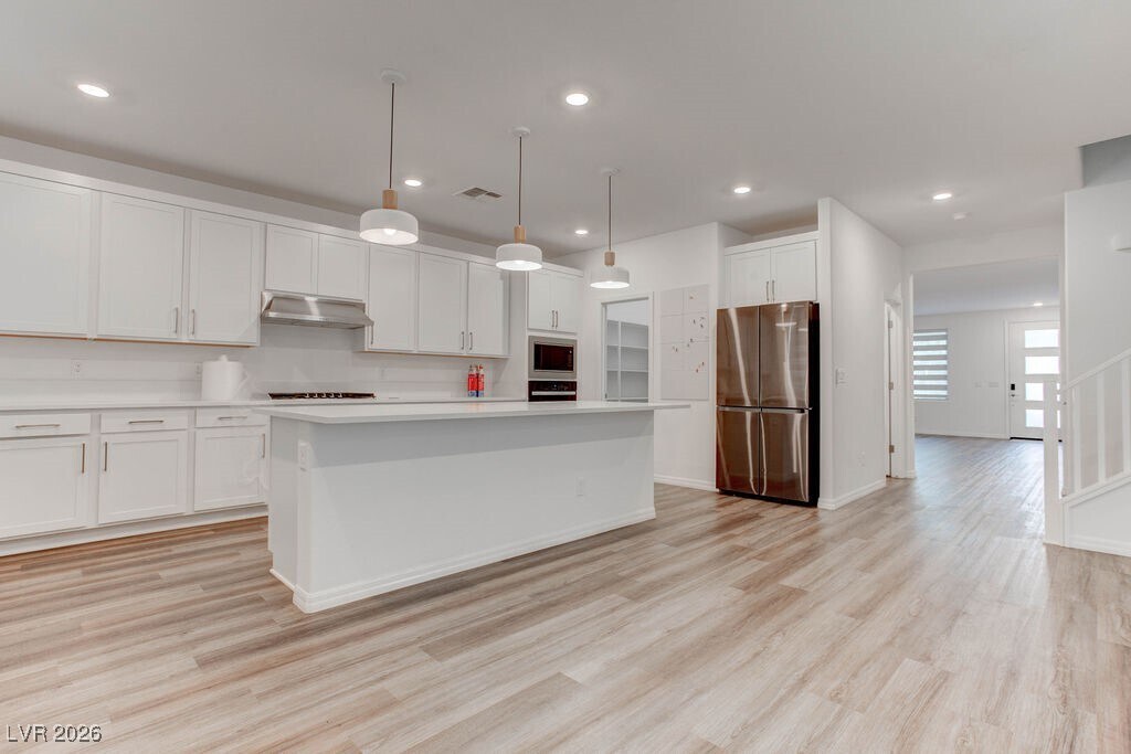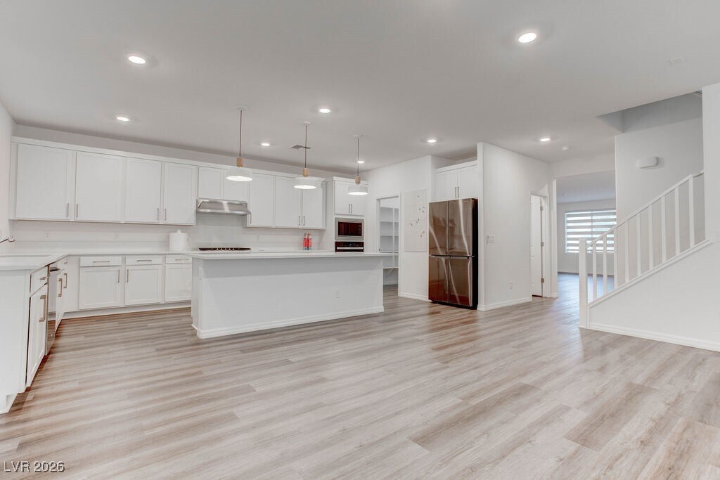 Welcome to this stunning residence offering 4 bedrooms, 4 bathrooms, and 3,960 sq. ft. of thoughtfully designed modern living space. The open-concept floor plan is highlighted by soaring 9-foot ceilings, upgraded flooring, custom railings, and elegant designer lighting, creating a bright and inviting atmosphere throughout. The chef-inspired kitchen features a generous island, ideal for entertaining and everyday living. A private downstairs luxury suite with a full bath provides the perfect retreat for guests, extended family, or a home office. Ideally situated in the desirable heart of Southern Highlands, this home is conveniently located near top-rated schools, shopping, dining, parks, and easy freeway access—offering both comfort and convenience in an exceptional setting.