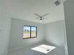 This stunning,move-in-ready home offers luxury and style in a prime location. Designed with neutral tones,it features an inviting paver driveway and impeccable landscaping for exceptional curb appeal. The open floor plan boasts cathedral and 10-foot ceilings,24x24 tile flooring,and a split-bedroom layout for privacy. The luxurious primary suite includes white cabinetry,quartz countertops,and glass shower doors. Built with top-quality materials by a renowned builder,the home offers impact windows,an irrigation system,and an automatic garage. With 4 bedrooms and 3 baths,this rare opportunity will be available starting in February.