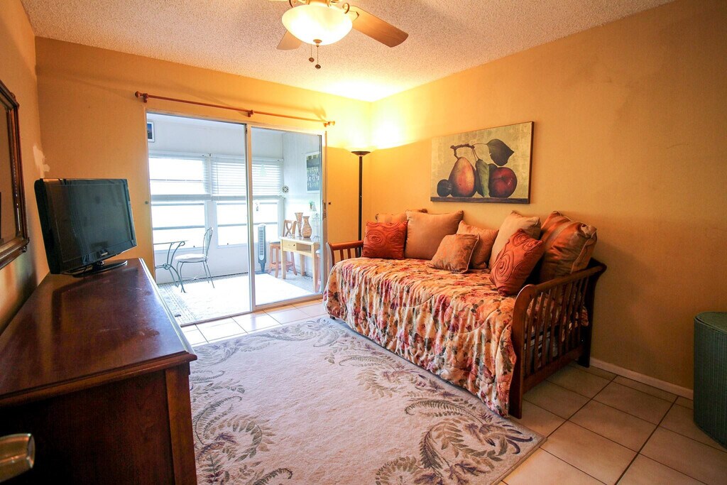 READY FOR SOUTH FLORIDA SUNSHINE? This beautiful seasonal rental in an active adult community,ideally located in the heart of Deerfield Beach. This spacious 1st fl,2 bedroom,2 bath condo has an updated kit & bath & tile floors thru-out. The primary bedroom offers a qu bed,while the guest rm includes a daybed & the patio & living room have sleeper sofasperfect for hosting visitors. Enjoy a cozy encl patio overlooking a peaceful garden view & a short walk to pool. Convenient pkg rt in front & steps to laundry facilities! The perfect place to enjoy South Fl liv! Gated comm w/free bus service,pools,tennis,pickleball,putting green,cafe,a magnificent clubhouse featuring classes,clubs,free movies,brdwy shows,fitness cntr & more! Min to beach,dining & shopping! Assoc. Claims 55+ MLS ID F10537494