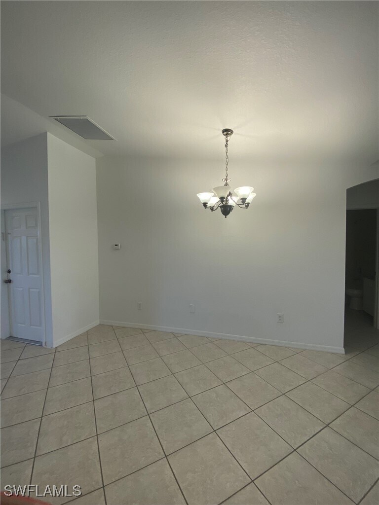 This 3 bedroom,2 bath,1 car garage home boasts an open concept with spacious living and dining areas,as well as an Interior Laundry! The Kitchen features a side-by-side Refrigerator,Range,Dishwasher and Microwave with plenty of counter space with Butcher block tops,plus a large breakfast bar. Interior Laundry closet for full sized washer and dryer with storage shelves. The Master bedroom with rear access and the adjoining bath has walk-in tiled shower. Guest bath has combination tub/shower. Tile and LVP flooring,as well as ceiling fans throughout. Central Cape Coral location with easy access to bus line and major roads. Lawn service included. Last Month's Rent may be waived with acceptable application and credit scores. Owner may consider one small pet.