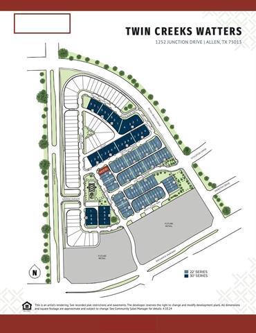 BRAND NEW, NEVER LIVED IN! Experience modern living in this stunning 2-bedroom, 2.5-bath townhome located in the highly sought-after Twin Creeks Watters community of Allen. Built in 2025, this home features soaring 20-foot ceilings, an open-concept layout, luxury vinyl plank flooring, and a gourmet kitchen with quartz countertops and a walk-in pantry. The spacious primary suite offers dual walk-in closets and a spa-like bath with double vanities and a separate shower. Enjoy a low-maintenance lifestyle with a rear-entry 2-car garage, covered porch, and access to scenic trails and greenbelts. Conveniently situated near top-rated Allen ISD schools, shopping, dining, and major highways, this beautifully designed home combines comfort, convenience, and contemporary style — Refrigerator, Washer and Dryer Included!
