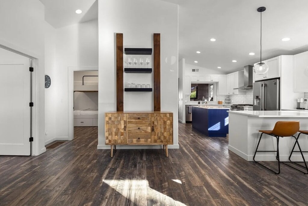 Located just 4 blocks from downtown Whitefish, this beautifully remodeled 2,280 square foot fully furnished home features 4 bedrooms, 2 bathrooms, and 2 levels of living. Upstairs, the primary bedroom features an en-suite bathroom, walk-in closet, spacious connected den/living area, and a second story deck with partial views of surrounding mountains! The main floor includes all other living areas: living room, kitchen, dining room, 3 bedrooms, 1 bathroom, and laundry room. Don't overlook these bonus amenities: breakfast bar, wine cooler, stainless steel appliances, walk-in pantry, central A/C, two gas fireplaces, and built in bunk beds perfect for kiddos or a guest suite. The fully fenced oversized back yard features a Trex decked patio, patio furniture, a large shed for storage, and off-alley parking for 2 vehicles. Just blocks from Whitefish High School, Memorial Park, and all of downtown, this residential location is perfect for enjoying all things Whitefish! Lease term negotiable (3 month minimum). Tenants are responsible for gas (NW Energy), electric (Flathead Electric), renter's insurance (provider of tenant's choice), and snow removal. Owner provides water/sewer/garbage and lawn care. NO pets, no exceptions.