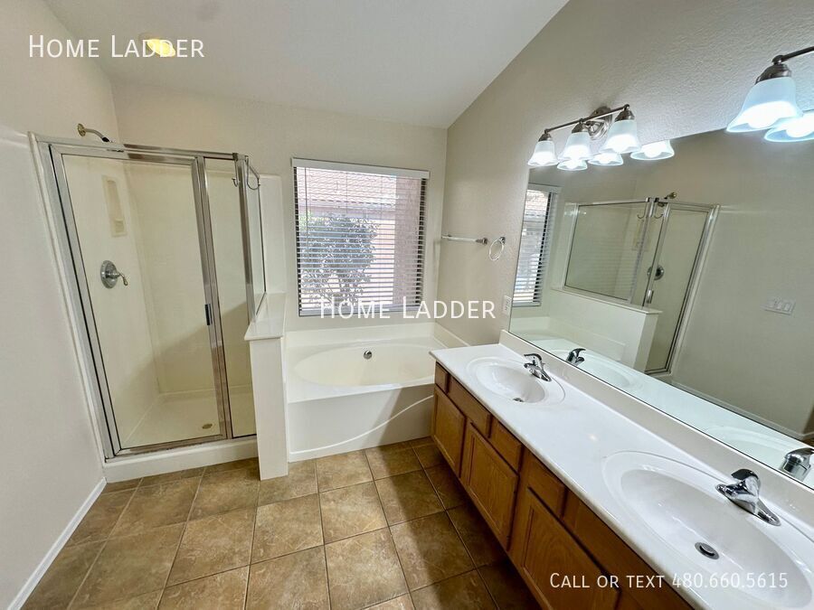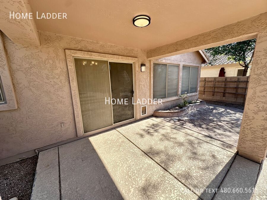 Welcome to this beautifully maintained 3-bedroom, 2-bathroom home located in the highly desirable Neely Commons community near Downtown Gilbert! Step inside to discover a bright, open-concept living space featuring vaulted ceilings and a seamless flow between the living room, dining area, and kitchen, perfect for everyday living and entertaining. The kitchen is designed with both style and functionality in mind, showcasing granite countertops, stainless steel appliances, and a spacious kitchen island . Throughout the home, you'll find a thoughtful blend of durable tile and plush carpeting, complemented by fresh interior paint and upgraded light fixtures. Each bedroom includes a ceiling fan with light combo for added comfort, and the home offers ample storage to keep everything organized. The spacious primary suite serves as a relaxing retreat, featuring a walk-in closet and a private ensuite bathroom complete with a walk-in shower, dual vanity sinks, oversized bathtub, and a private toilet room. Additional highlights include a designated laundry room with washer and dryer hookups and a 3-car garage with extra storage space. Step outside to the beautiful backyard oasis, where you can enjoy a sparkling pool and jacuzzi, a covered patio and a built-in fire pit with seating. Situated in Neely Commons, the home offers convenient access to nearby parks, shopping, dining, and entertainment, and is located just minutes from the vibrant charm of Downtown Gilbert. All Home Ladder residents are enrolled in the Resident Benefits Package (RBP) for $50/month, which includes renters insurance, credit building to help boost your credit score with timely rent payments, $1M Identity Protection, HVAC air filter delivery, our best-in-class resident rewards program, and much more! More details upon application. Additional monthly fees: $9 admin, $35 pet rent/pet. This property qualifies for our security deposit alternative—move in with less upfront cost! One-time fees: $49 application fee per adult, $149 pet application per pet, $195 administration, and a security deposit equal to one month’s rent. 12-18 month minimum lease term. If moving in between 7/1 and 01/31, the lease term shall be 18 months. If moving in between 2/1 and 6/30, the lease term shall be 12 months. Lease must commence within 21 days of application approval. After approval, security deposit must be delivered to our office by noon on the next business day. The lease must start Monday-Thursday and not on any federal/state holidays.