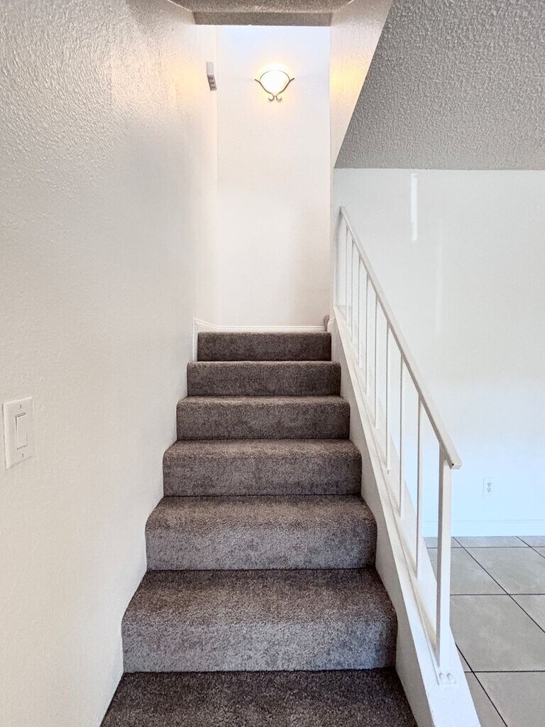 This thoughtfully designed home offers a desirable floor plan with a 2-car garage and a private, fenced front patio perfect for relaxing or entertaining outdoors. The main level showcases durable tile flooring throughout. Upstairs includes both bedrooms and a full bath, with brand-new carpet on the stairs and in the bedrooms. The washer and dryer are conveniently located in the garage. The interior has been freshly painted and professionally cleaned, making this home truly move-in ready.
